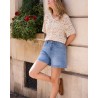 Le bermuda Doja est la pièce parfaite pour un look estival à la fois chic et décontracté. Confectionné dans un denim bleu clair subtilement délavé, il offre une coupe droite légèrement allongée qui flatte la silhouette tout en garantissant un confort optimal au quotidien.
