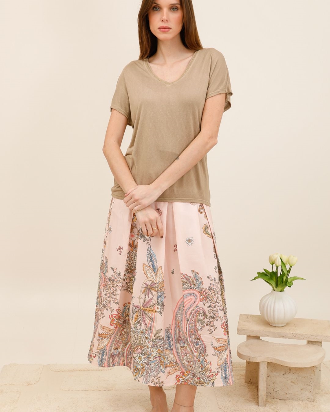 Laissez-vous séduire par la jupe Étoile, une pièce féminine et élégante au charme intemporel. Avec son imprimé délicat inspiré du motif cachemire et ses couleurs douces ou lumineuses, elle apporte une touche bohème chic à toutes vos tenues.