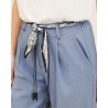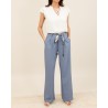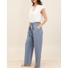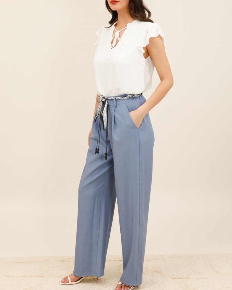 Son détail signature : une ceinture foulard intégrée, délicatement nouée à la taille, qui ajoute une note originale et sophistiquée. La taille haute met en valeur la silhouette et allonge la jambe avec élégance.