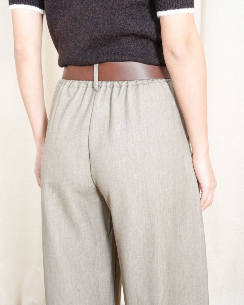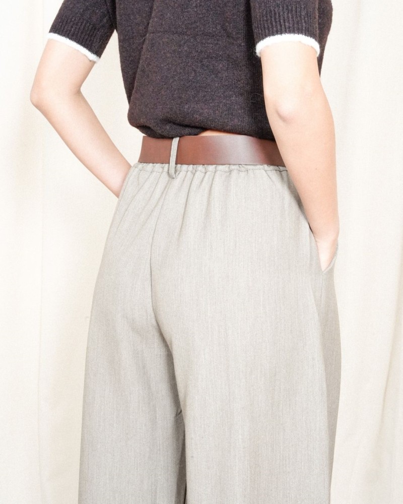 Doté de pinces à l’avant et d’une taille élastiquée au dos, il s’adapte facilement à toutes les morphologies et assure un tombé parfait.
