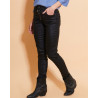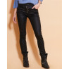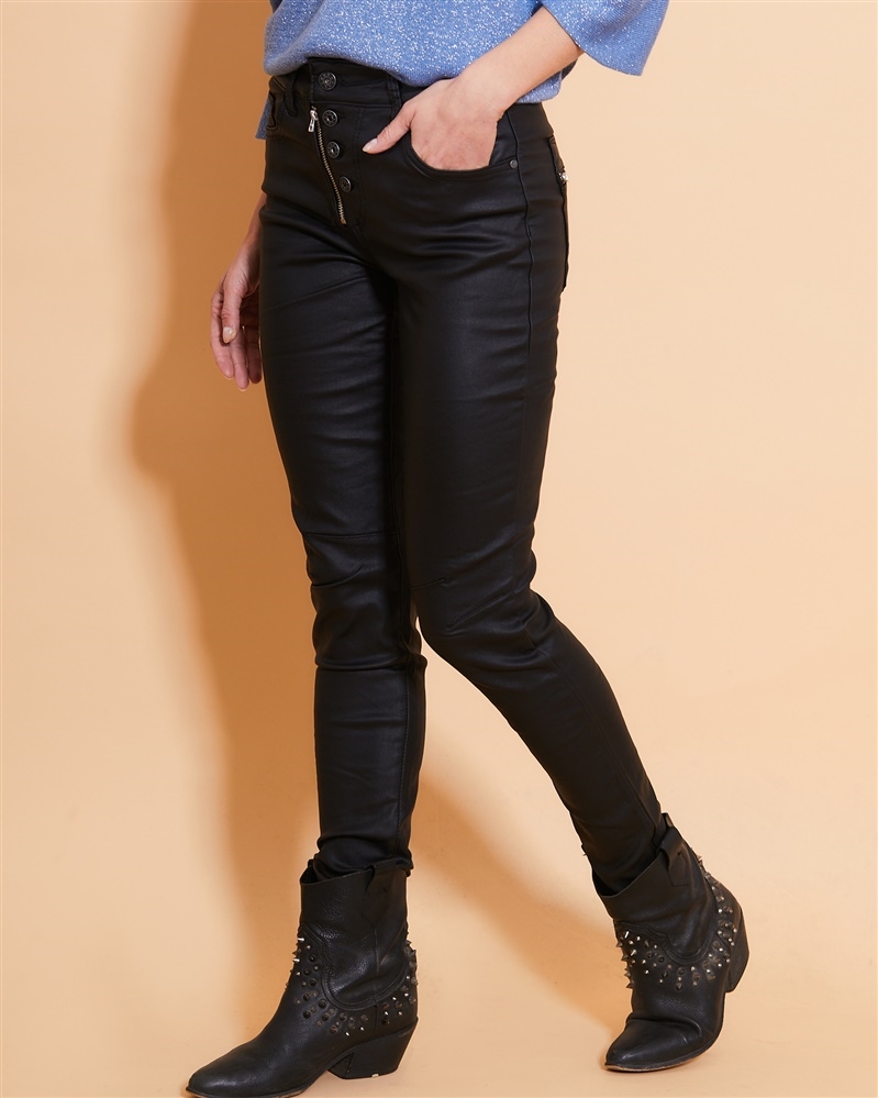 Le pantalon slim noir huilé Péricles se distingue par son allure moderne et raffinée. Sa coupe ajustée met en valeur la silhouette tandis que la finition huilée apporte une touche subtile de brillance et de caractère. Il dispose de poches latérales pratiques et de poches arrière zippées qui ajoutent une note contemporaine. La fermeture à quatre boutons renforce son style original et soigné. Conçu dans une matière confortable et résistante, il s’adapte facilement à toutes les occasions, qu’il s’agisse d’un look chic ou plus décontracté.