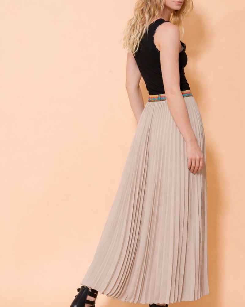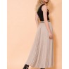 Apportez une touche de raffinement à votre dressing avec cette jupe longue plissée, à la fois fluide et féminine. Confectionnée dans un tissu léger et aérien, elle offre un tombé impeccable et accompagne chacun de vos mouvements avec élégance.
