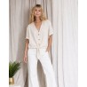 Polyvalente, la Benji blouse se porte aussi bien avec un pantalon taille haute pour un look élégant, qu’avec un jean ou un short pour une allure plus décontractée.