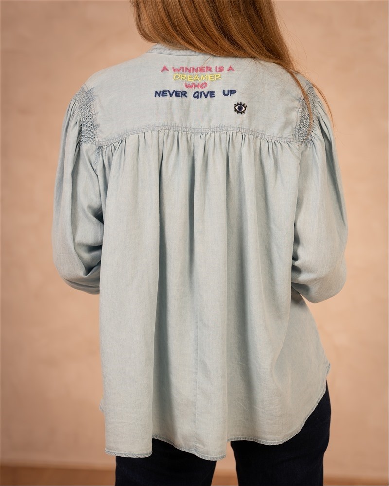 • Motifs et inscription brodés au dos