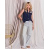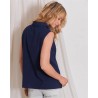 Chemise sans manches à col classique, confectionnée en coton doux. Sa coupe droite assure un tombé élégant, tandis que les boutons sur le devant ajoutent une touche de raffinement. De délicates broderies ornent les épaules et la poitrine, apportant une note artisanale et féminine. Parfaite pour composer un look à la fois chic et bohème.