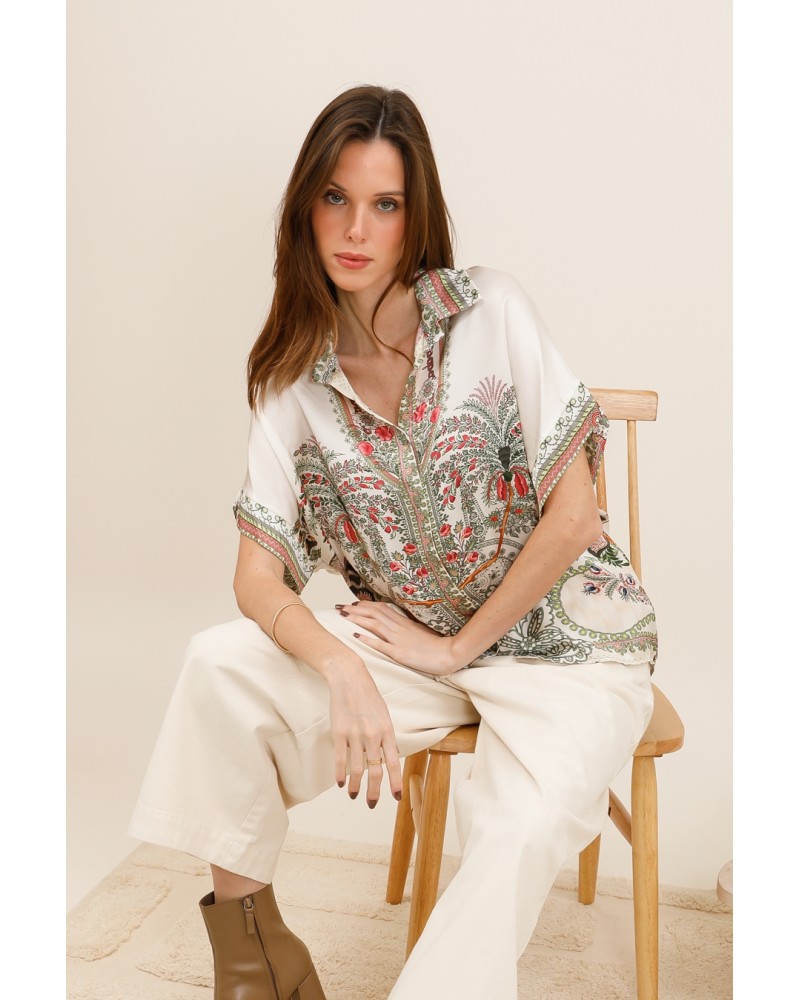 La chemise Anna incarne une élégance douce avec son imprimé floral et végétal raffiné, inspiré de la nature. Ses détails délicats et ses nuances harmonieuses apportent une touche artistique et lumineuse à votre tenue.