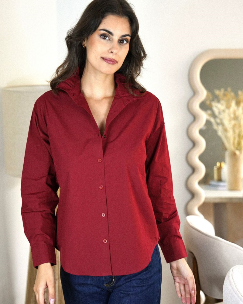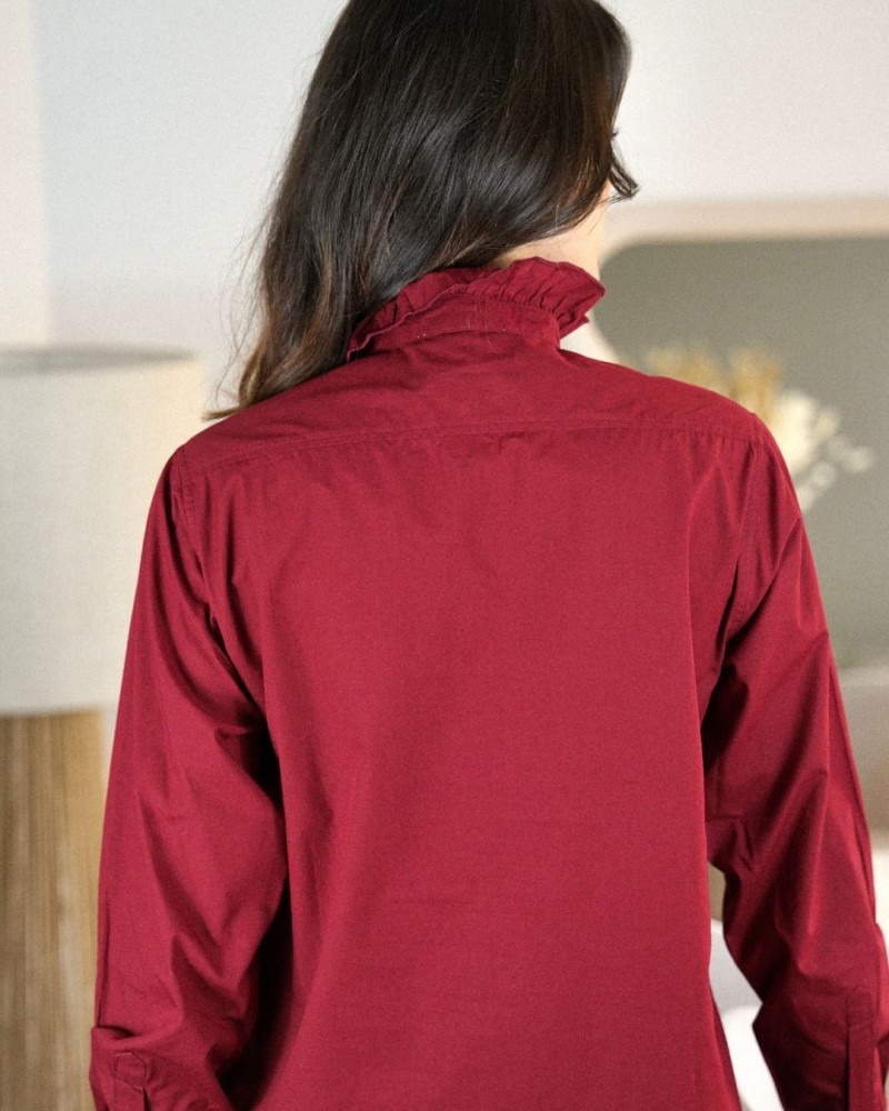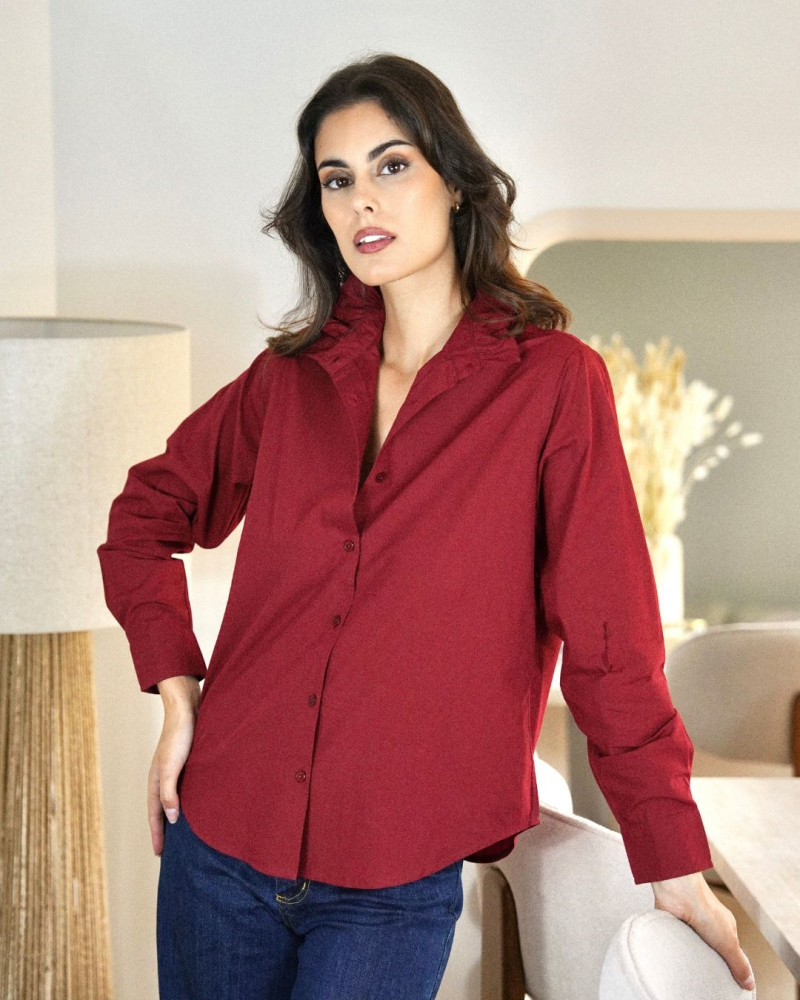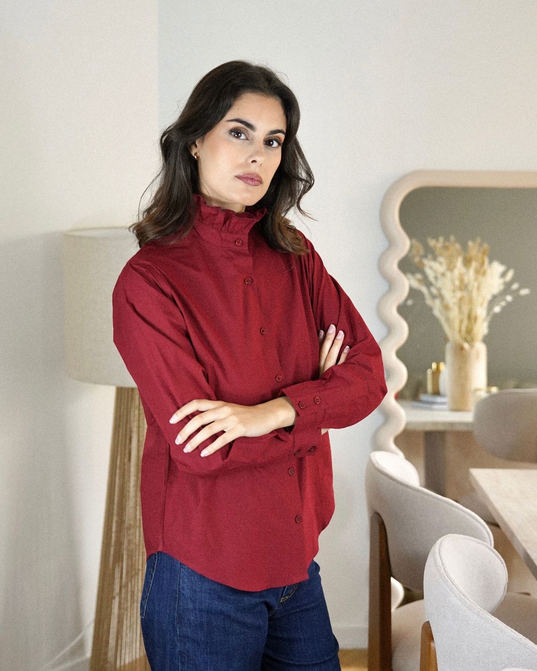 Adoptez l’élégance intemporelle avec la Chemise Crème. Confectionnée dans une matière douce et légère, elle se distingue par son col montant à volant discret, ses manches longues boutonnées et sa coupe droite qui allie confort et sophistication. Facile à associer, elle se porte aussi bien avec un pantalon tailleur qu’avec un jean pour un style chic et décontracté. Un indispensable à avoir dans sa garde-robe pour toutes les saisons.
