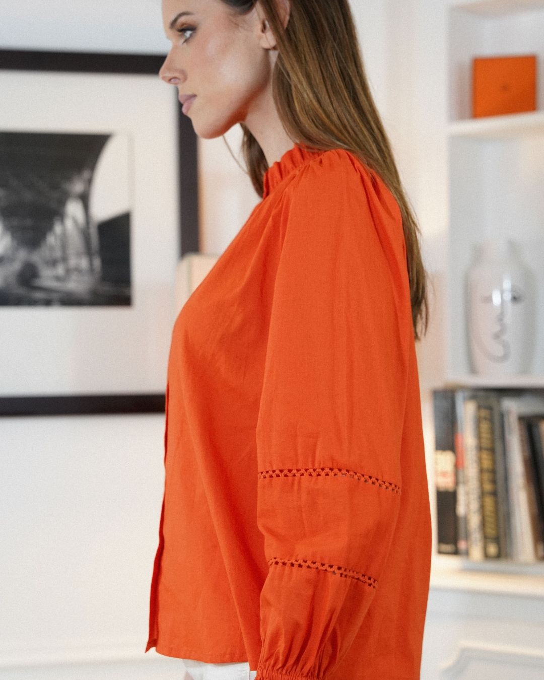 La chemise Dorothé incarne l’élégance féminine avec ses détails délicats et sa coupe fluide. Confectionnée dans un tissu léger et agréable à porter, elle se distingue par son col légèrement volanté qui apporte une touche romantique et raffinée. Les empiècements ajourés au niveau des épaules et des manches ajoutent un subtil jeu de transparence qui souligne le caractère élégant de la pièce.