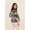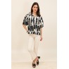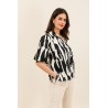 Le chemisier Felix imprimé apporte une touche graphique et contemporaine à votre vestiaire. Son imprimé noir et écru au style artistique attire le regard tout en restant facile à associer pour un look moderne et élégant.