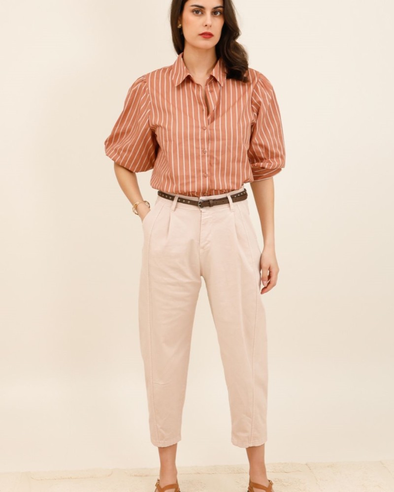 Polyvalent, le chemisier Felix se porte aussi bien avec un pantalon pour un look chic et structuré qu’avec un jean pour une tenue plus décontractée.