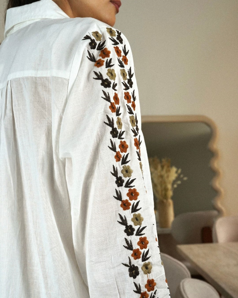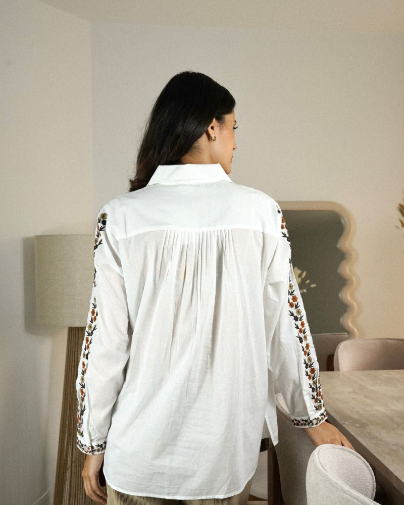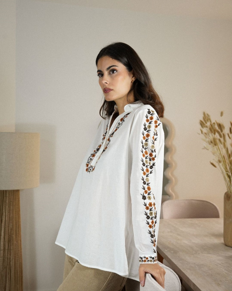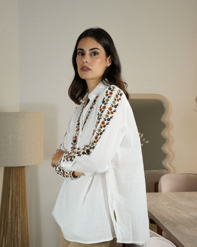 Apportez une touche d’élégance et de féminité à votre garde-robe avec la chemise Lali. Conçue dans une matière légère et agréable, elle se distingue par ses délicates broderies florales qui longent l’encolure et les manches. Sa coupe fluide assure un confort optimal tout en sublimant la silhouette. Parfaite pour un look chic et décontracté, elle se porte aussi bien avec un pantalon tailleur qu’un jean, pour un style polyvalent et raffiné.