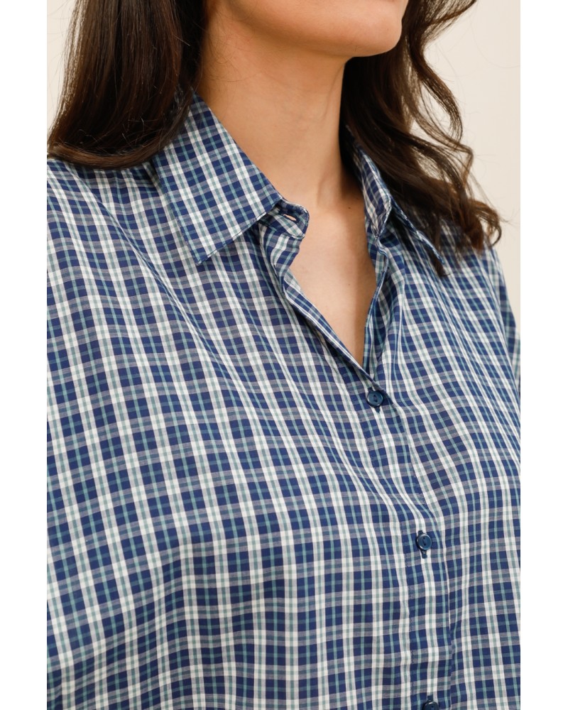 La tunique Lara revisite l’imprimé carreaux dans une version moderne et élégante. Avec ses tons bleus intemporels et sa coupe oversize, elle s’impose comme une pièce forte du vestiaire casual chic.