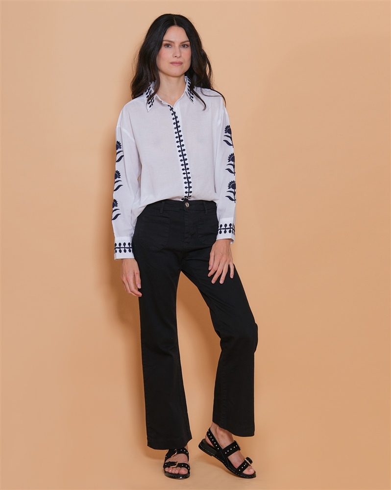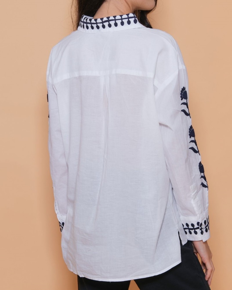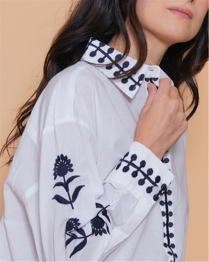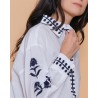 • Broderie florale le long des manches et de la fermeture