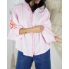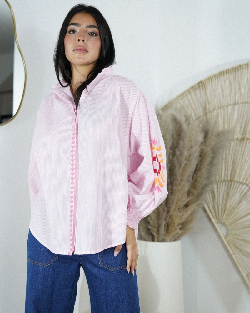 Disponible en plusieurs versions — blanche brodée ou rayée avec broderies bleues — la chemise Leiva est idéale pour composer des looks à la fois élégants, modernes et intemporels.