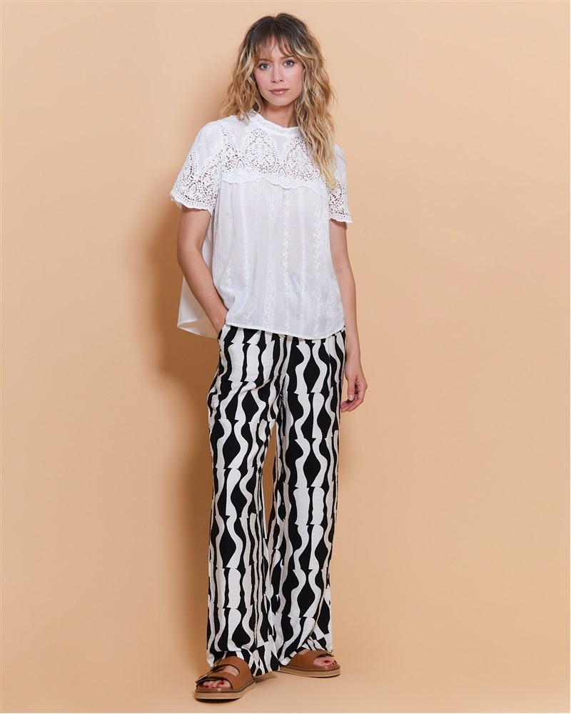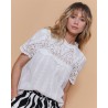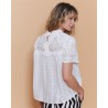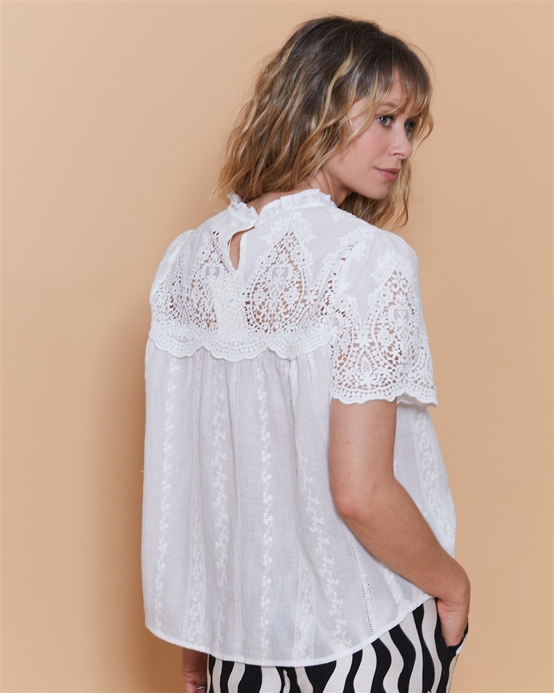 • Chemise ecru unie de la marque IT HIPPIE • Manches courtes • Ajourée et volants au niveau du col et de la poitrine • Détais floraux brodés • Fermeture boutonnée • 100% coton