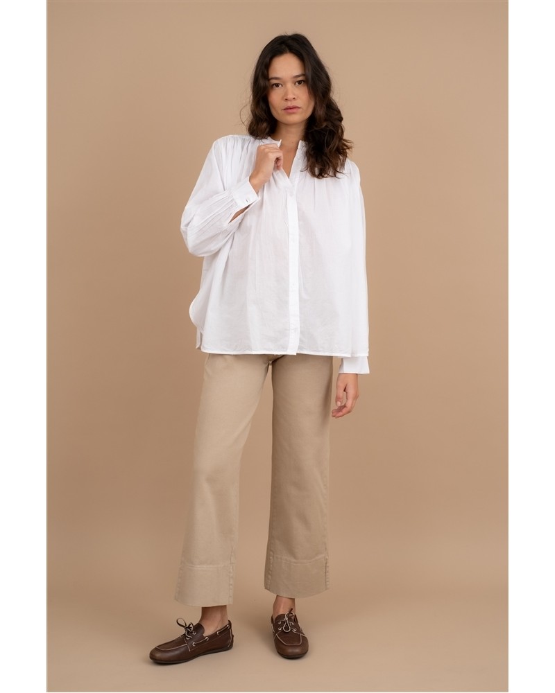 La chemise Passion, ample et aérienne, séduit par sa ligne épurée et sa teinte unie. Un essentiel du vestiaire qui mêle confort et élégance décontractée