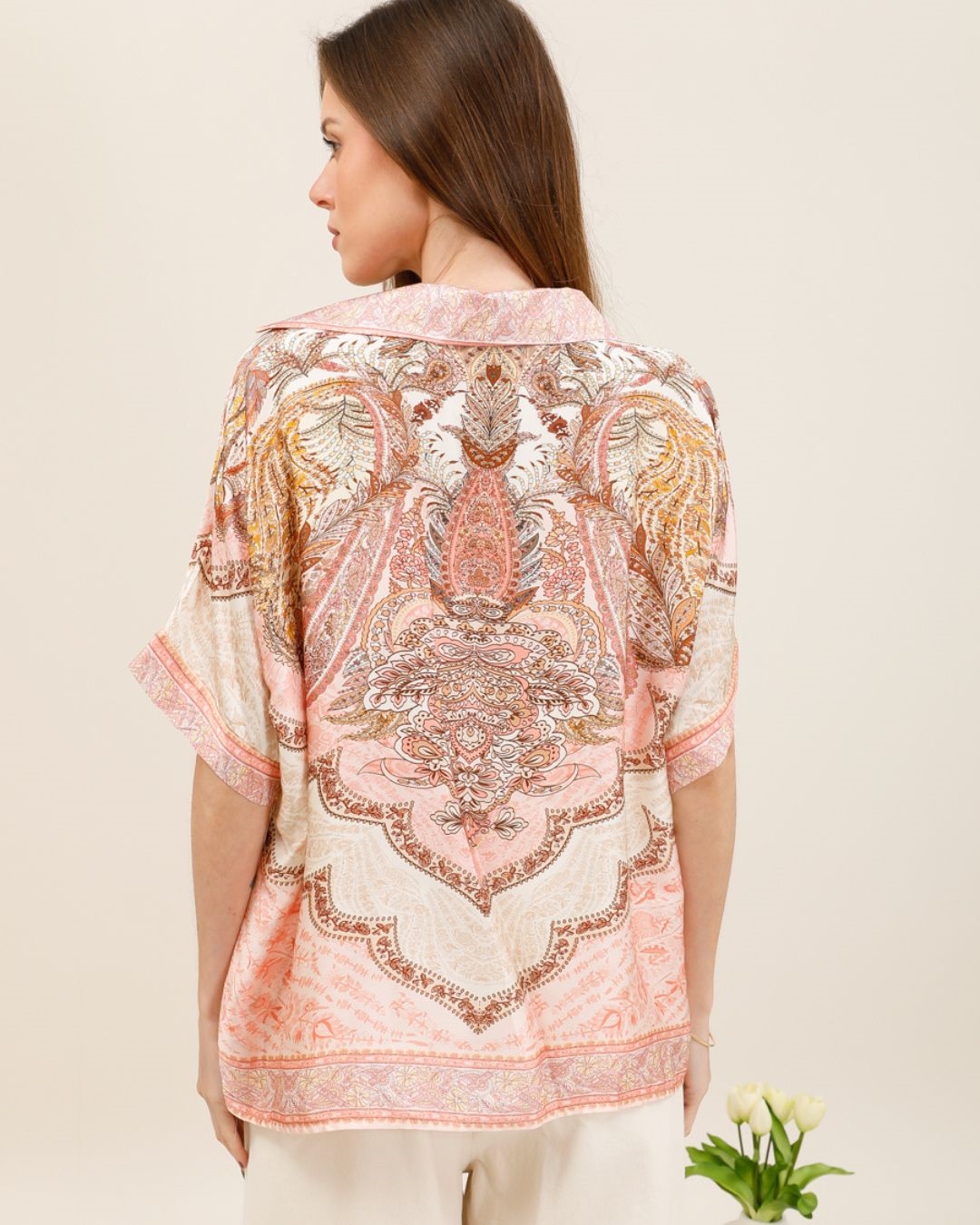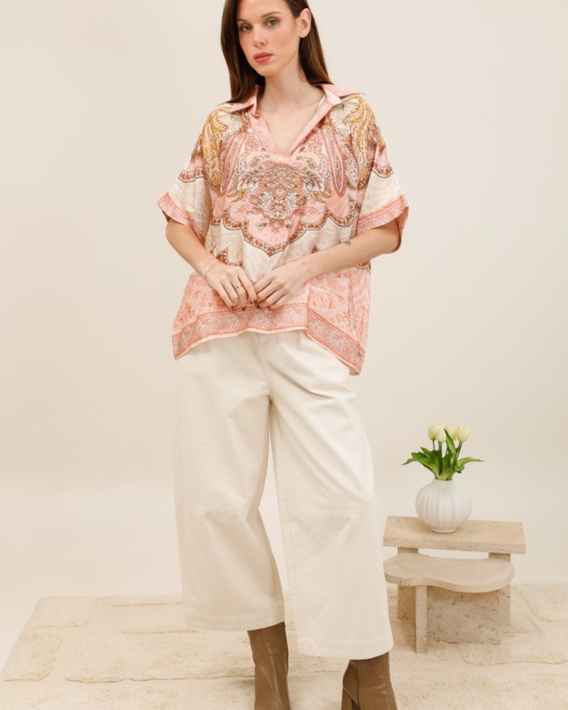 La chemise Rose séduit par son imprimé cachemire délicat et ses teintes douces qui évoquent un style bohème raffiné. Sa coupe ample et fluide offre un tombé léger et aérien, parfait pour les journées ensoleillées.