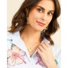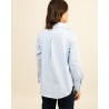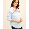 Élégante et pleine de fraîcheur, la chemise Sita revisite le classique rayé avec une touche artistique et féminine. Confectionnée dans un tissu léger et confortable, elle se distingue par ses fines rayures bleues et ses superbes broderies florales aux détails délicats, apportant relief et sophistication à la silhouette.