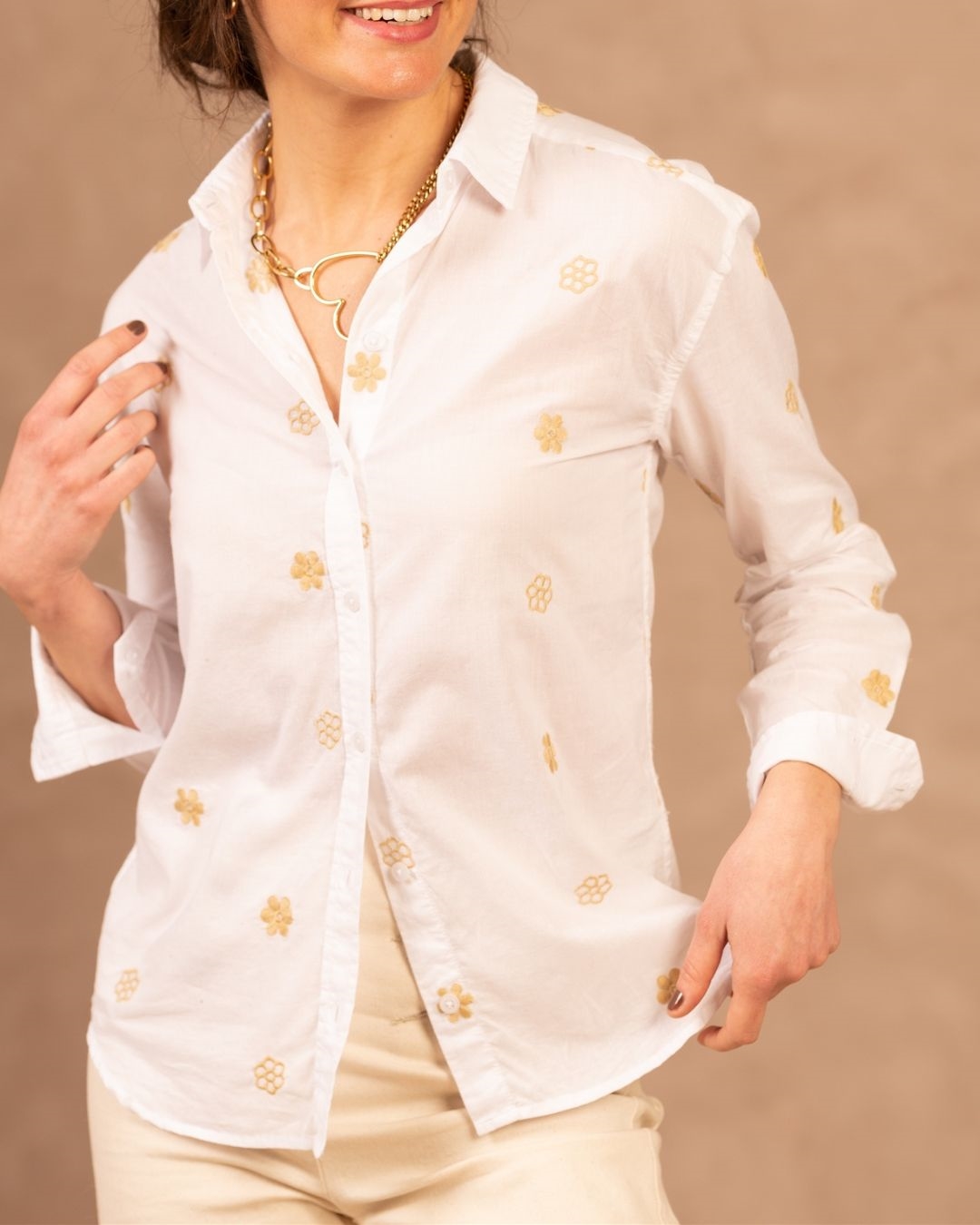 • Petits soleils dorés brodés
