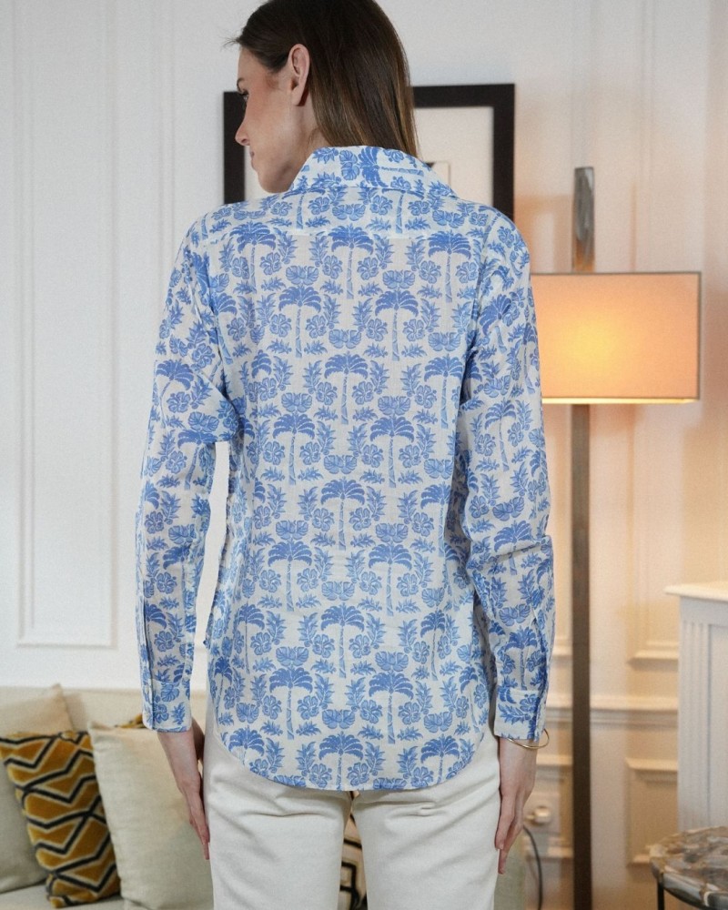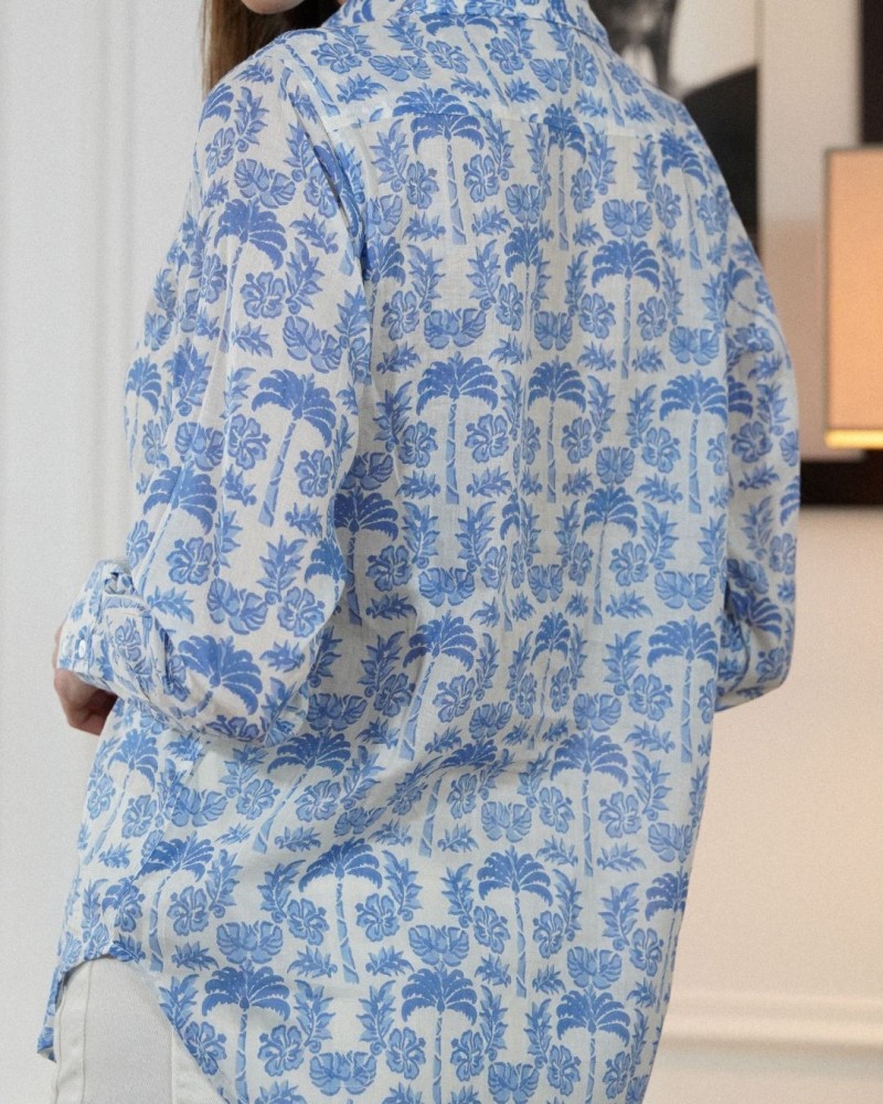 La chemise Zack est une pièce élégante et lumineuse qui apporte une touche d’originalité à votre dressing. Confectionnée dans une matière légère et agréable à porter, elle séduit par son imprimé tropical raffiné mêlant palmiers et motifs floraux, pour un esprit chic et estival.