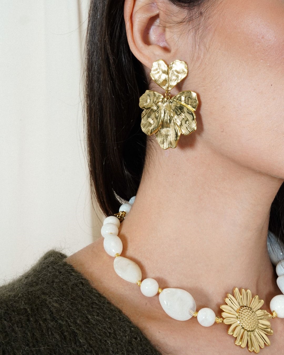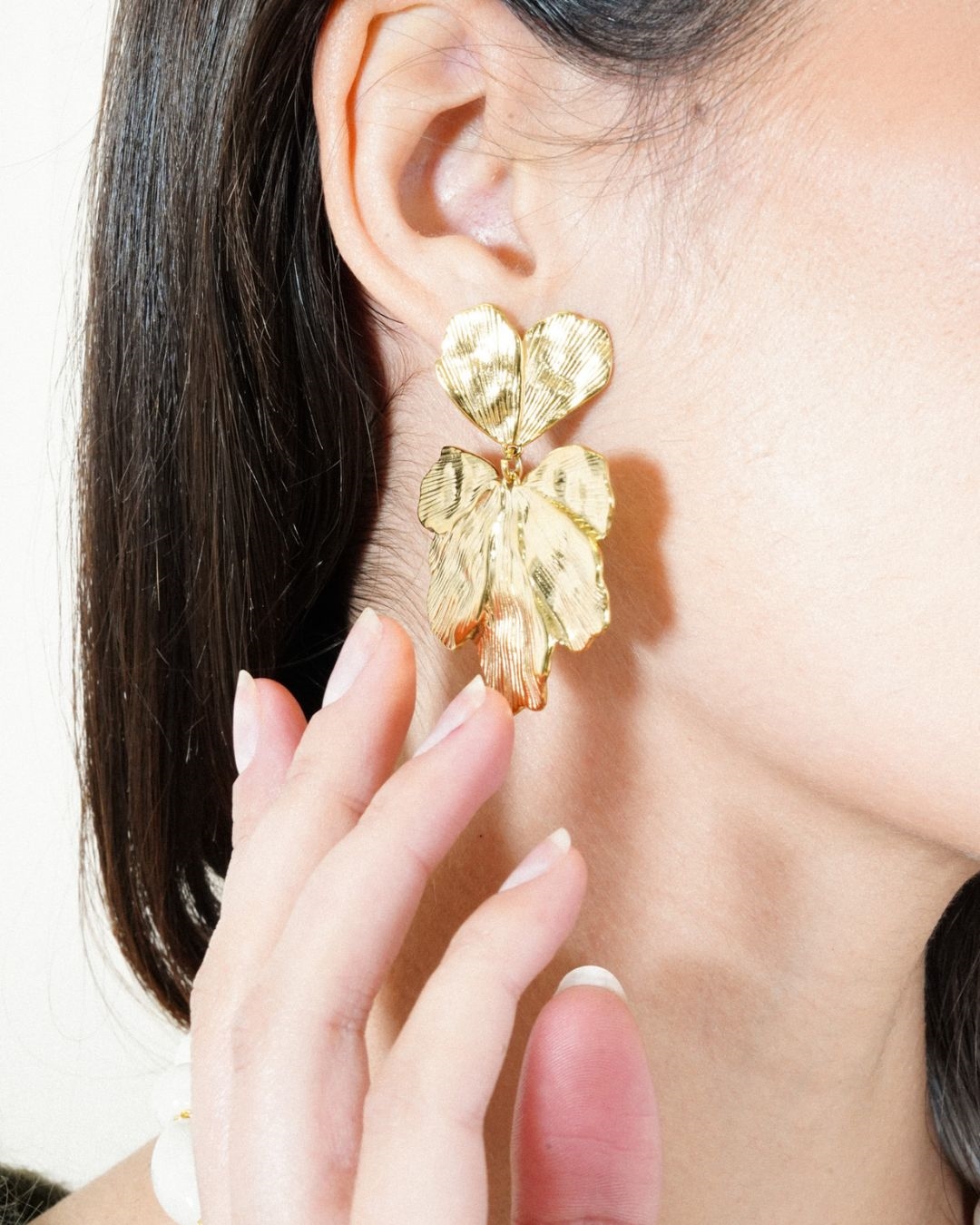 Inspirées de la nature, elles arborent un motif floral doré aux pétales finement texturés, apportant éclat et élégance à votre tenue.