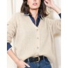 Sa maille moelleuse et chaude et sa coupe légèrement oversize lui confèrent un look cosy et moderne. Les boutons nacrés sur le devant ajoutent une touche féminine et raffinée.
