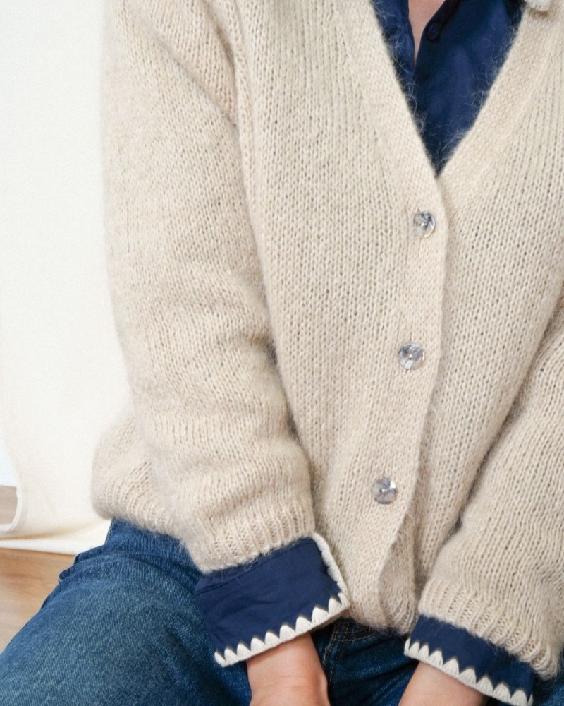 Polyvalent, le gilet Micha se porte aussi bien fermé comme un pull que ouvert sur un top ou une chemise, pour des styles variés et faciles à adopter.