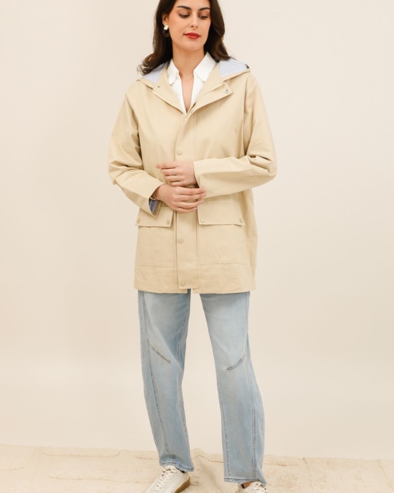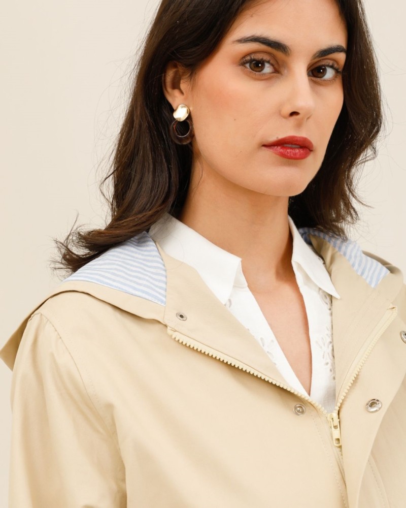 Alliez style et fonctionnalité avec l’imperméable Milie, une version courte et moderne du manteau de pluie. Son coloris beige intemporel s’adapte à toutes vos tenues, tandis que sa coupe droite apporte une allure casual chic parfaite pour le quotidien.