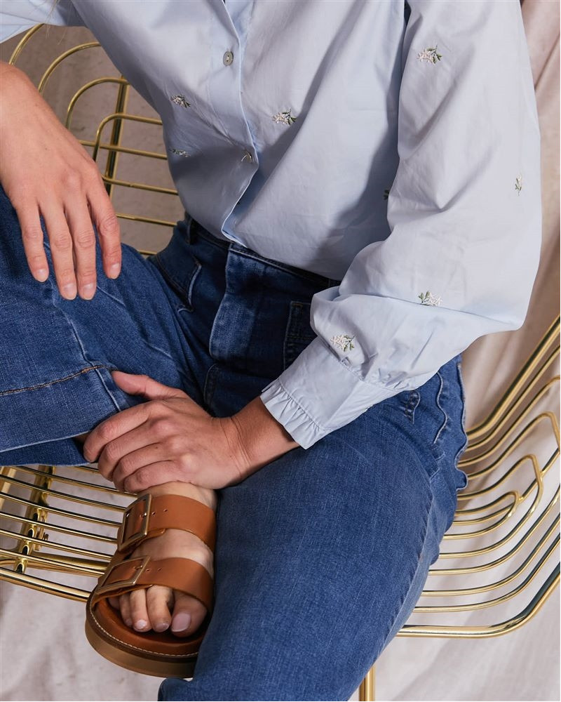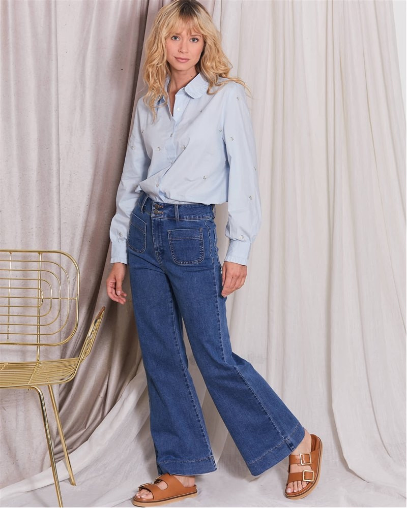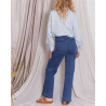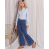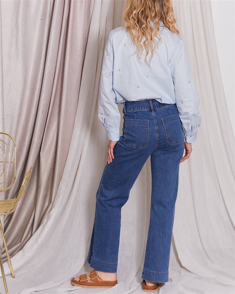 e pantalon Elenette d’Oraije revisite le jean blanc classique avec une touche rétro chic. Sa coupe droite légèrement évasée en bas, ses poches plaquées devant et ses boutons dorés apportent une allure élégante et tendance. Ce modèle est parfait pour illuminer vos looks de saison, facile à associer avec une chemise colorée, un t-shirt graphique ou une blouse fluide.