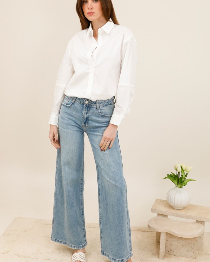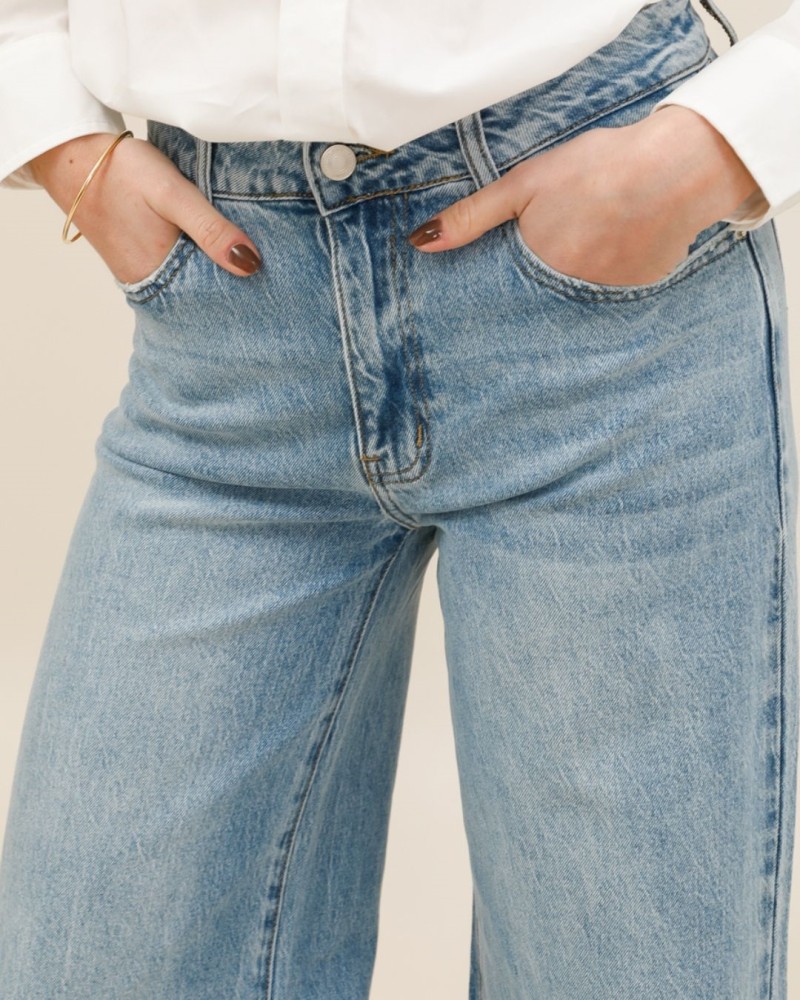 Le Queen Jeans incarne parfaitement le style tendance et intemporel. Avec sa coupe large et sa taille haute, il structure la silhouette tout en offrant un confort absolu.