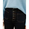 Le Vanille Jeans incarne parfaitement le style vintage revisité avec une touche moderne. Sa taille haute structurée et sa fermeture à boutons apparents allongent la silhouette tout en soulignant élégamment la taille.