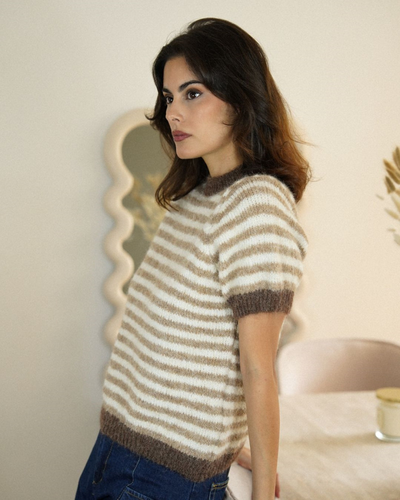 Apportez une touche de fraîcheur à vos looks avec le Bianca Pull. Confortable et tendance, il se distingue par ses rayures élégantes et ses bords contrastés qui structurent la silhouette. Parfait à porter seul ou superposé sur une chemise pour un style chic et décontracté.