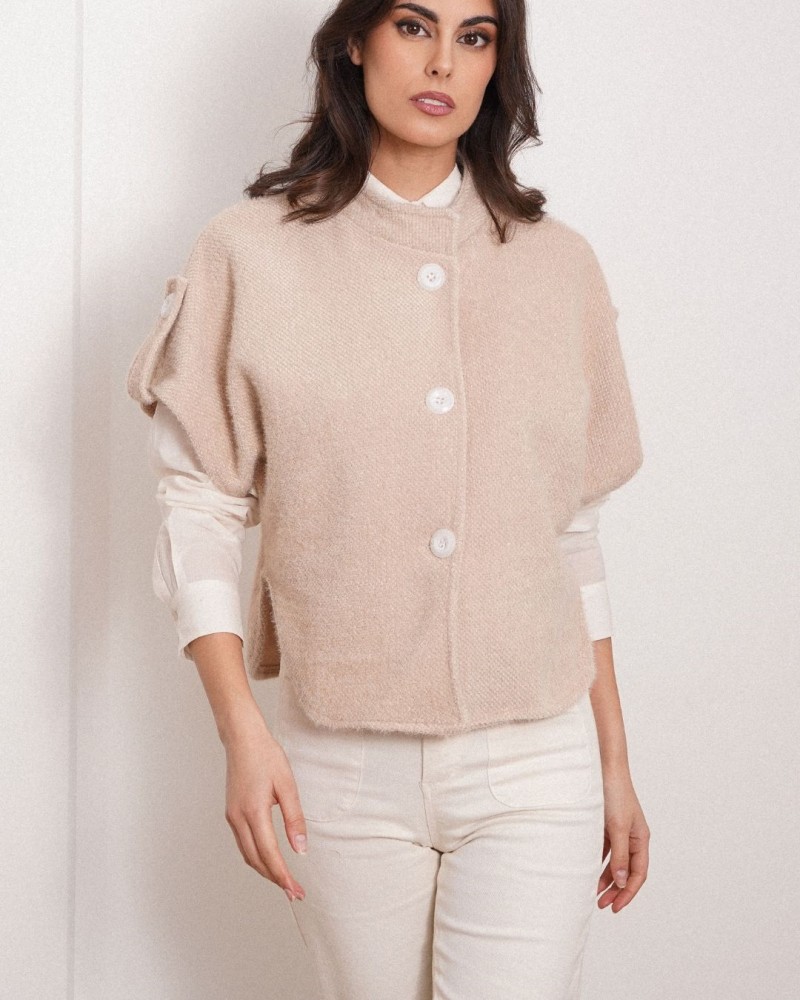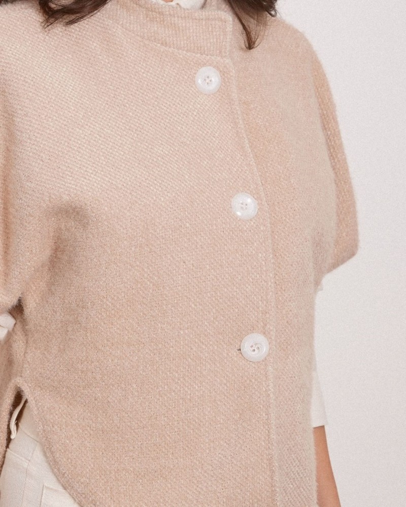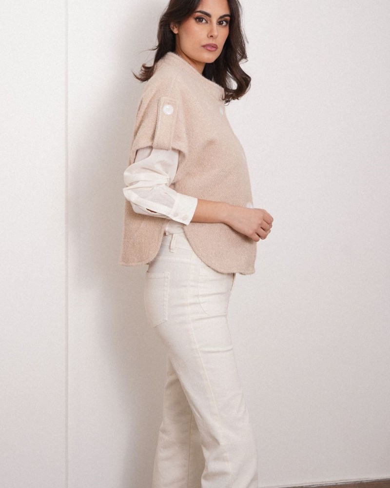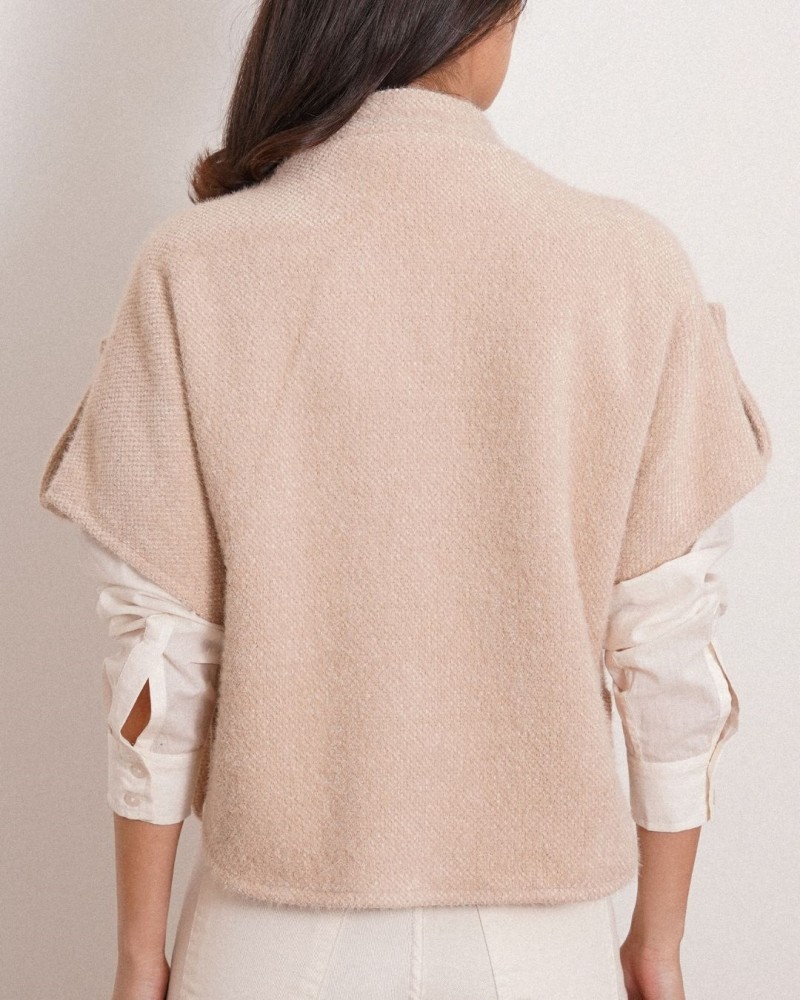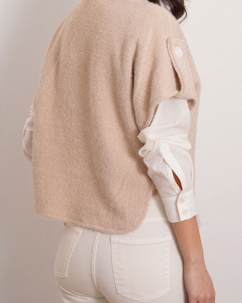 Le pull Ermy séduit par son allure minimaliste et sa coupe moderne, idéale pour une silhouette élégante au quotidien. Confectionné dans une maille douce et confortable, il présente une coupe courte et ample qui apporte fluidité et liberté de mouvement. Ses manches courtes structurées, soulignées par une patte boutonnée, lui donnent une touche contemporaine et raffinée.