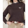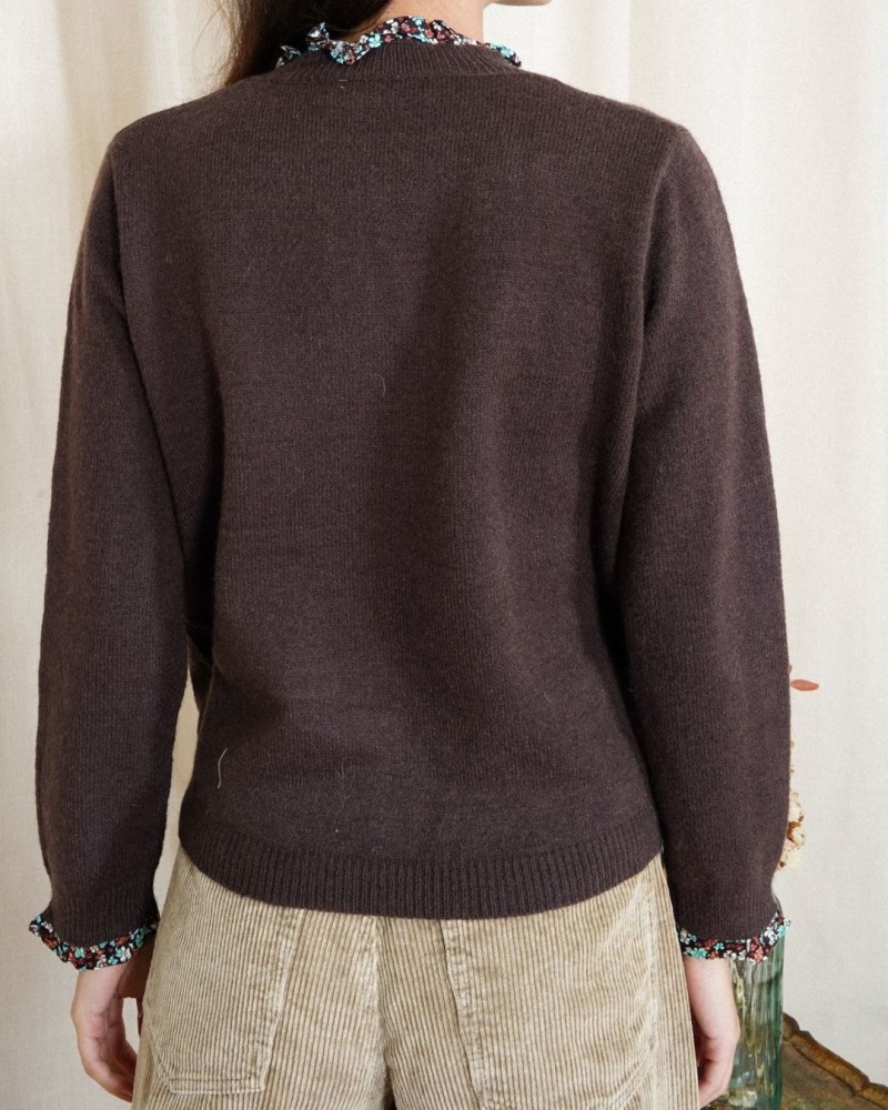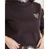 Sa maille fine et confortable est rehaussée d’un joli cœur fleuri brodé sur la poitrine, apportant une note délicate et poétique.