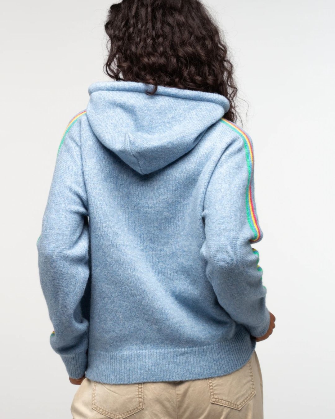 Le pull Mariela allie douceur et style avec une touche fun et colorée. Confectionné dans une maille moelleuse et confortable, il se distingue par sa teinte bleu chiné apaisante et ses détails vibrants. Les bandes arc-en-ciel le long des manches ainsi que les cordons multicolores apportent une note originale et tendance, parfaite pour dynamiser vos tenues du quotidien.