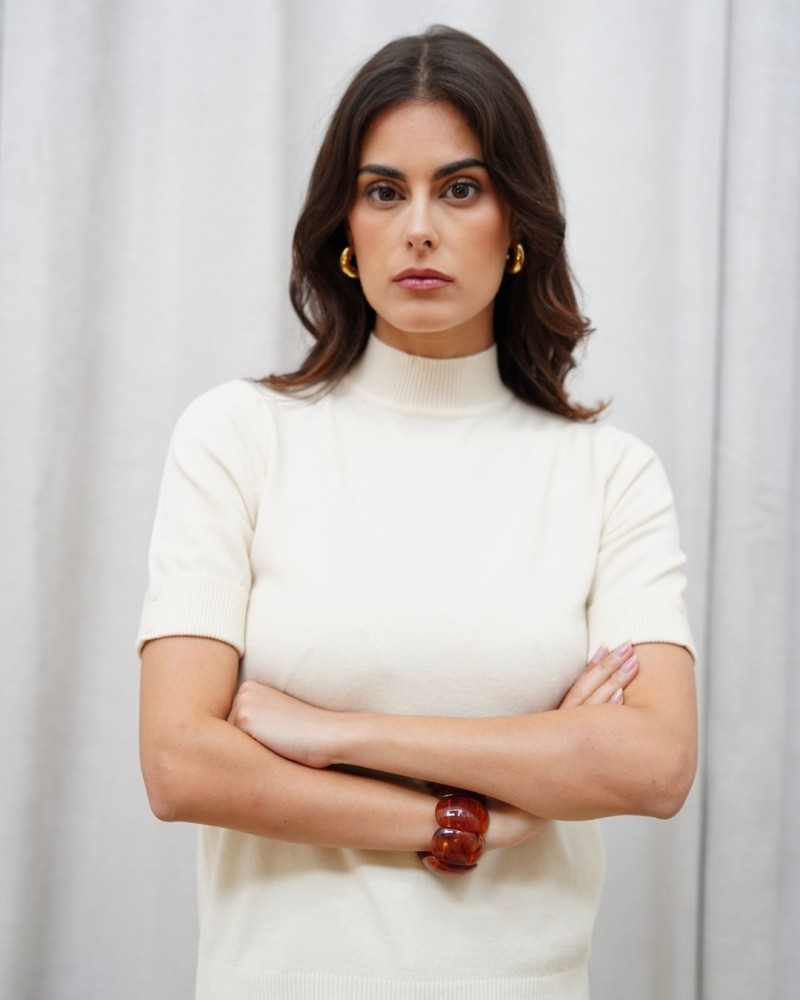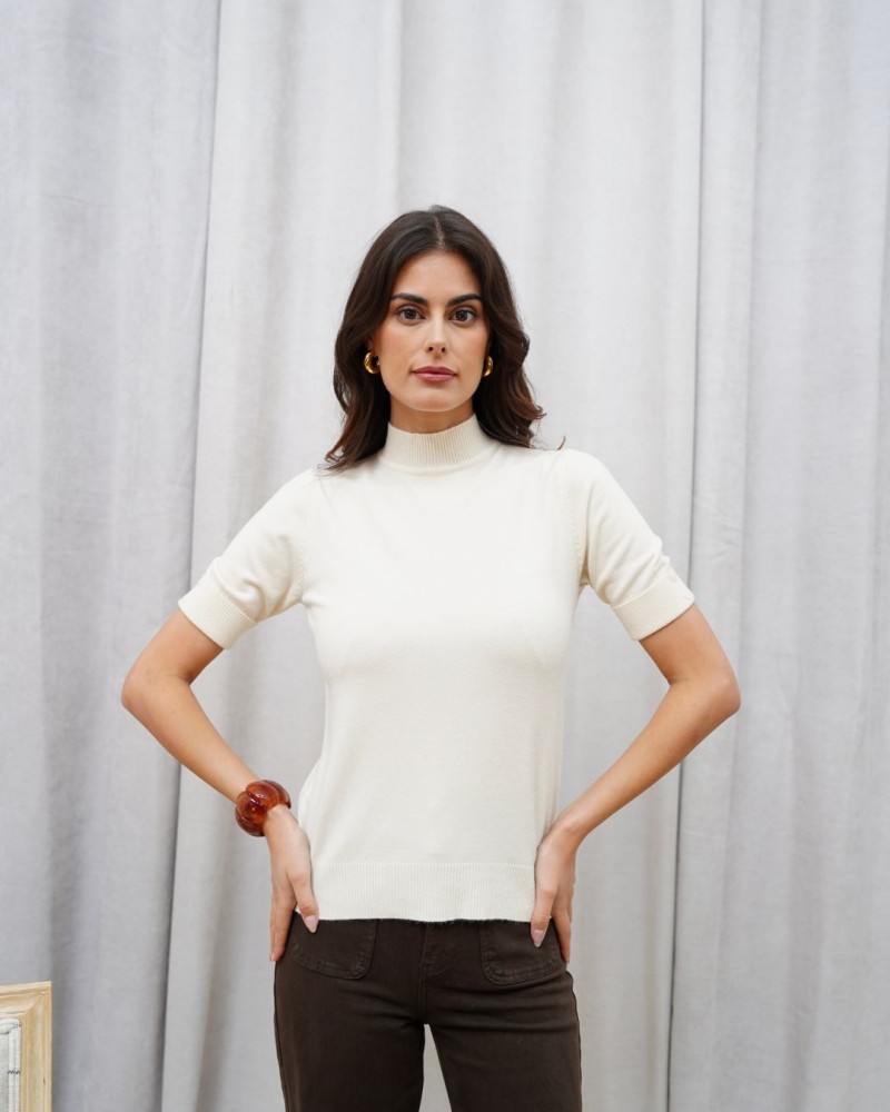 Découvrez le pull Nadine, une pièce élégante et intemporelle à manches courtes.