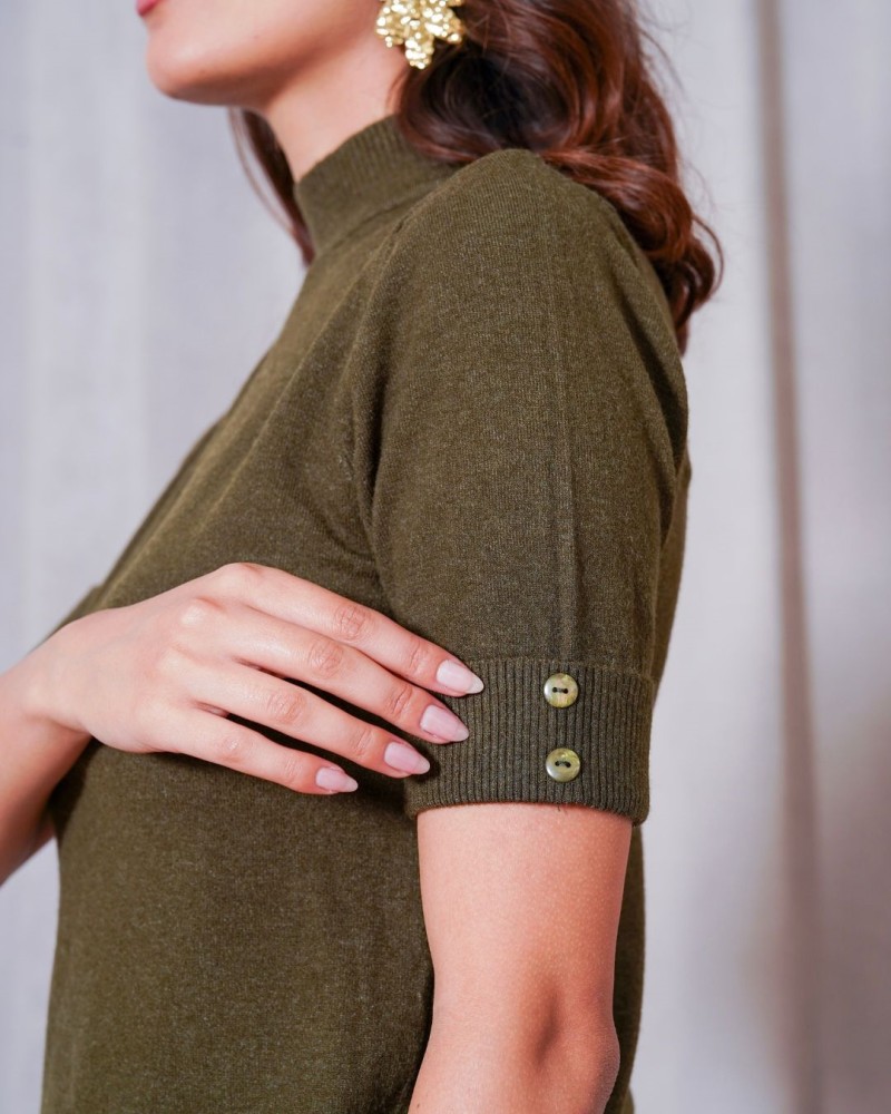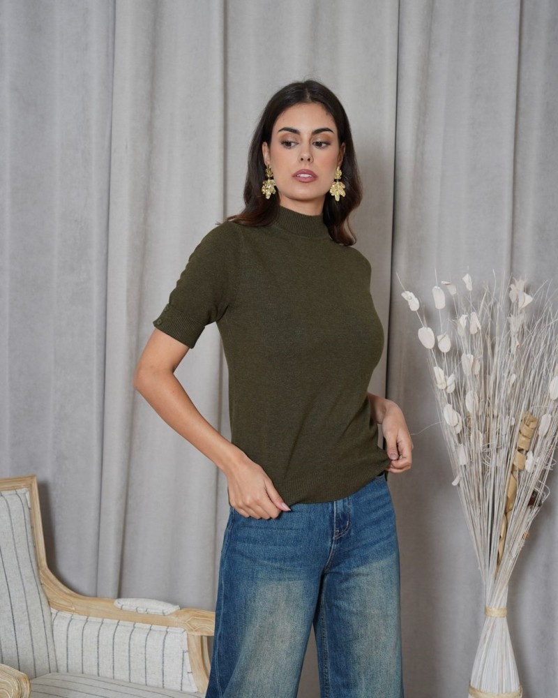 Avec son col montant et ses jolis détails de boutons sur les manches, il allie simplicité et raffinement. Sa maille douce et confortable s’adapte à toutes les saisons, se porte aussi bien seule qu’en superposition.