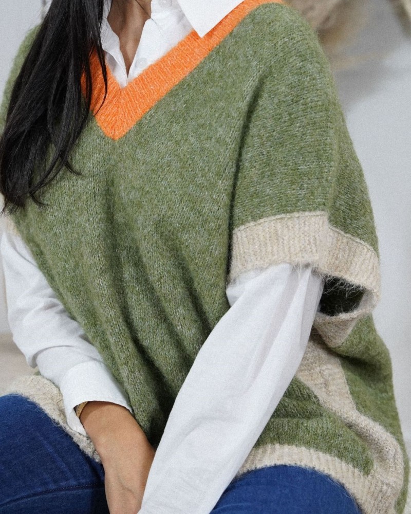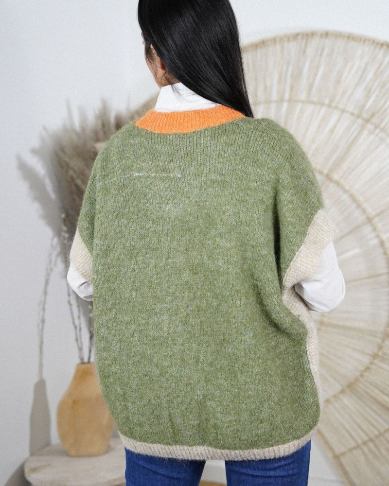 Le pull Siou est la pièce parfaite pour un look moderne et confortable. Avec sa coupe ample façon pull sans manches revisité, il se porte facilement superposé sur une chemise pour un style chic et structuré. Sa maille douce et légèrement duveteuse apporte chaleur et légèreté, idéale pour la mi-saison.