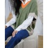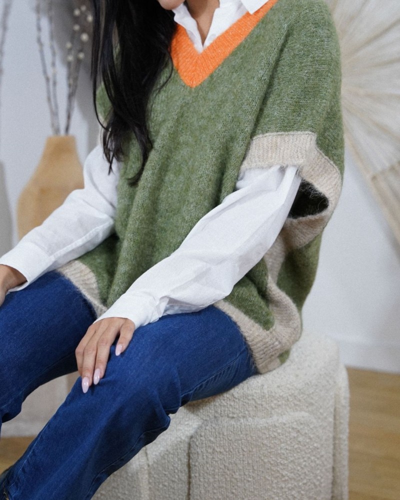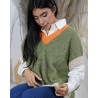 Son col en V contrasté souligne élégamment le décolleté et met en valeur la superposition avec une chemise blanche. Les finitions en bord-côte contrastées aux emmanchures et à la base ajoutent une touche tendance et originale. Décliné dans plusieurs associations de couleurs lumineuses, le pull Siou dynamise instantanément une tenue casual.
