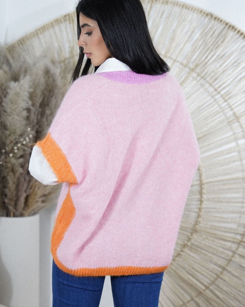 Son col en V contrasté souligne élégamment le décolleté et met en valeur la superposition avec une chemise blanche. Les finitions en bord-côte contrastées aux emmanchures et à la base ajoutent une touche tendance et originale. Décliné dans plusieurs associations de couleurs lumineuses, le pull Siou dynamise instantanément une tenue casual.