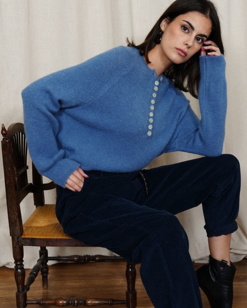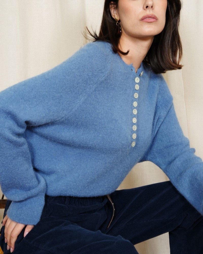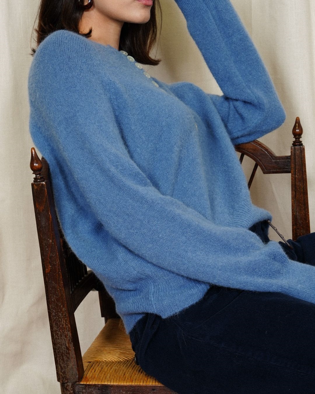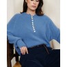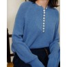 Le pull Tina séduit par son style raffiné et sa texture douce et duveteuse. Son détail signature : une rangée élégante de boutons nacrés sur le devant, qui apporte une touche chic et féminine à cette pièce confortable.
