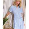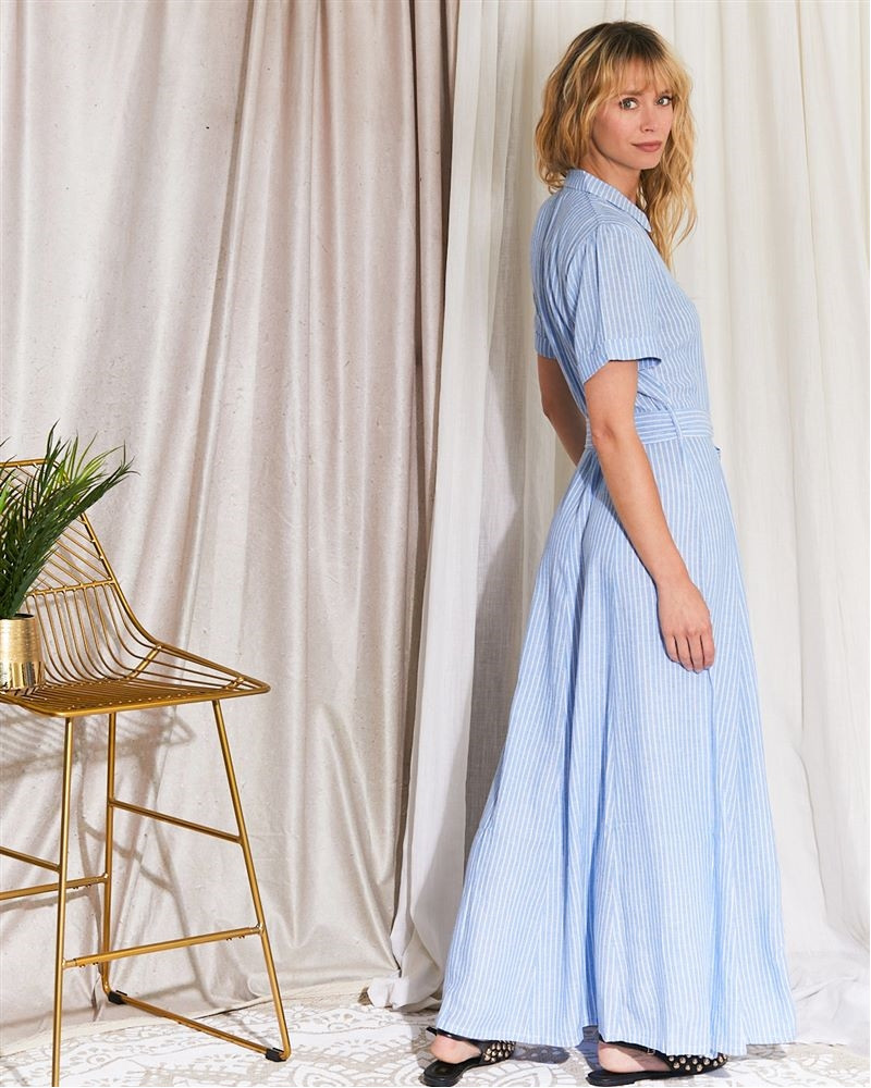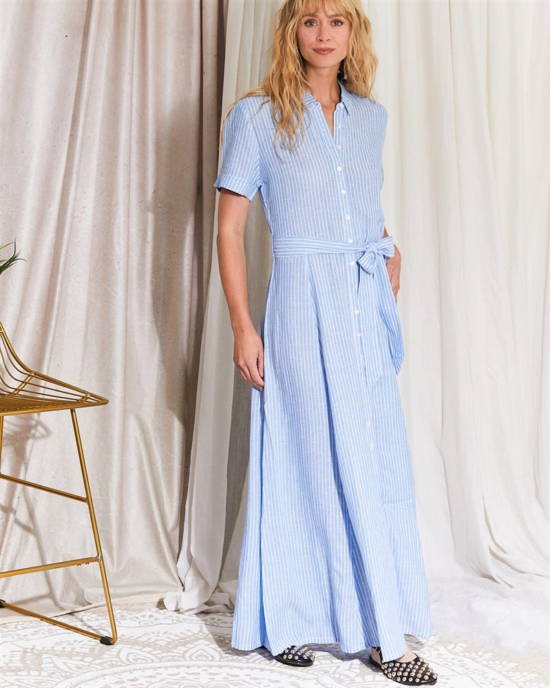 La robe Eline est un essentiel chic et raffiné, parfait pour vos journées d’été. Avec sa coupe longue et fluide, son col chemise et sa ceinture à nouer, elle allonge la silhouette tout en offrant un confort optimal. Son tissu léger et respirant en fait une pièce idéale à porter.