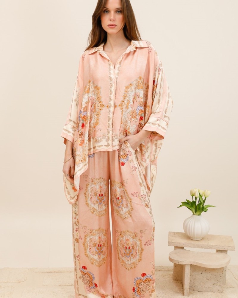 Portez-la avec un pantalon fluide assorti pour un look coordonné élégant, ou associez-la à un pantalon uni (beige, blanc) pour laisser l’imprimé s’exprimer pleinement. Parfaite avec des sandales en journée ou des bottines pour une allure plus sophistiquée.