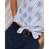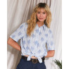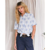 Une pièce légère et raffinée, parfaite pour l’été : la chemise Gina séduit par son imprimé floral bleu délicat sur fond rayé. Nouée à la taille pour un look décontracté-chic, elle s’associe aussi bien à un short qu’à un pantalon fluide.