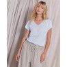 Avec son look casual chic et sa texture ultra douce, le tee-shirt Sylvaine est une pièce incontournable de la saison. Confectionné en 100% coton, il allie confort et style grâce à sa coupe droite légèrement ample et son col en V flatteur.