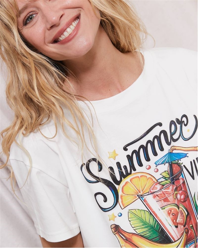 Tee-shirt blanc avec imprimé Summer Vibes.