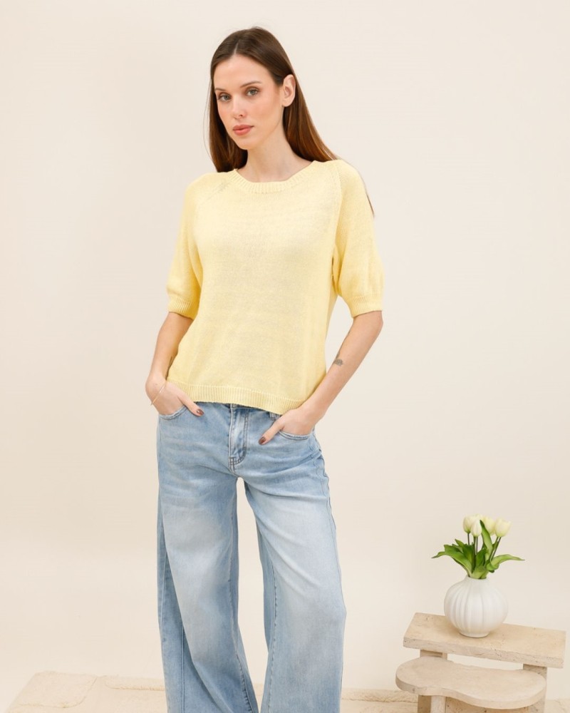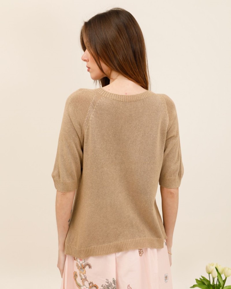 Le top Kiko manches courtes est la parfaite alliance entre confort et élégance décontractée. Confectionné dans une maille légère et respirante, il séduit par sa coupe fluide et ses manches courtes légèrement structurées qui apportent une touche moderne.