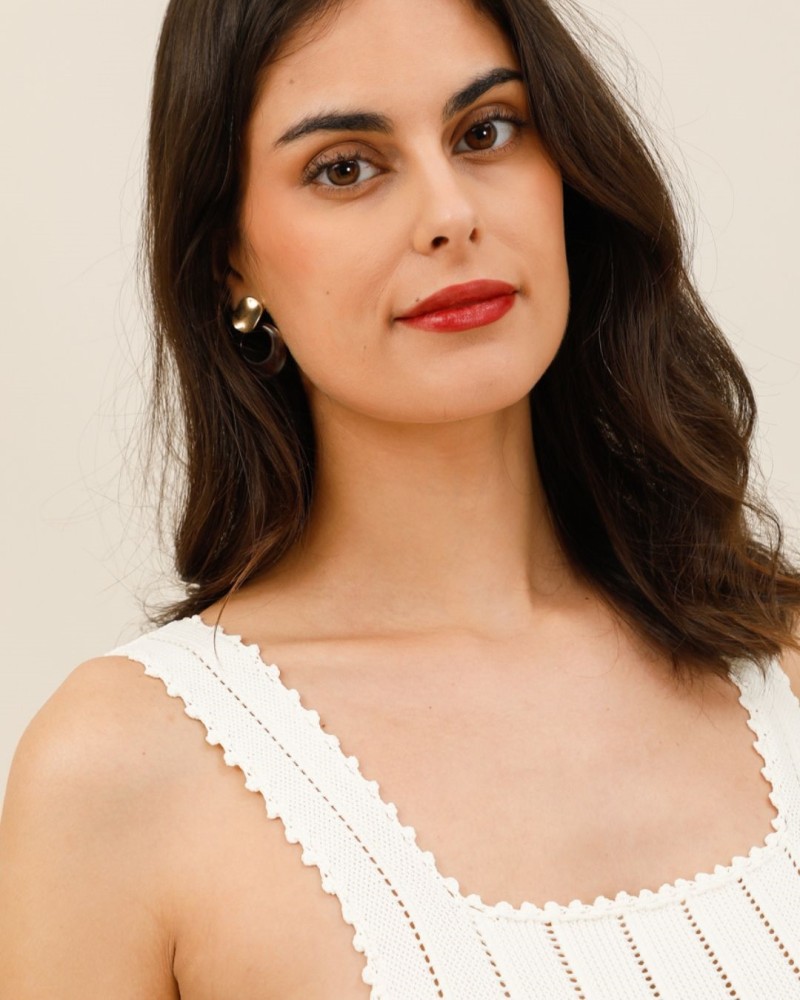 Le top Léonille est la pièce parfaite pour une allure délicate et estivale. Confectionné dans une maille fine légèrement ajourée, il épouse le corps avec douceur tout en apportant une touche de légèreté et de féminité.