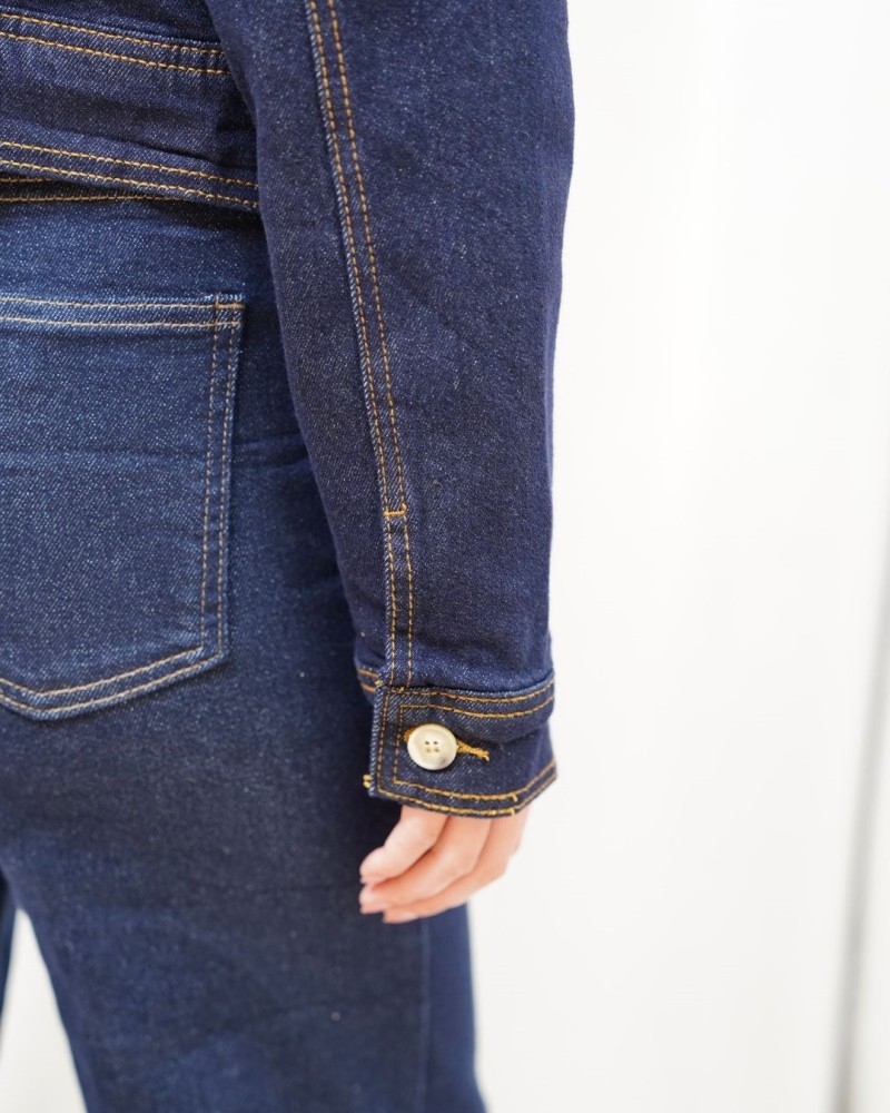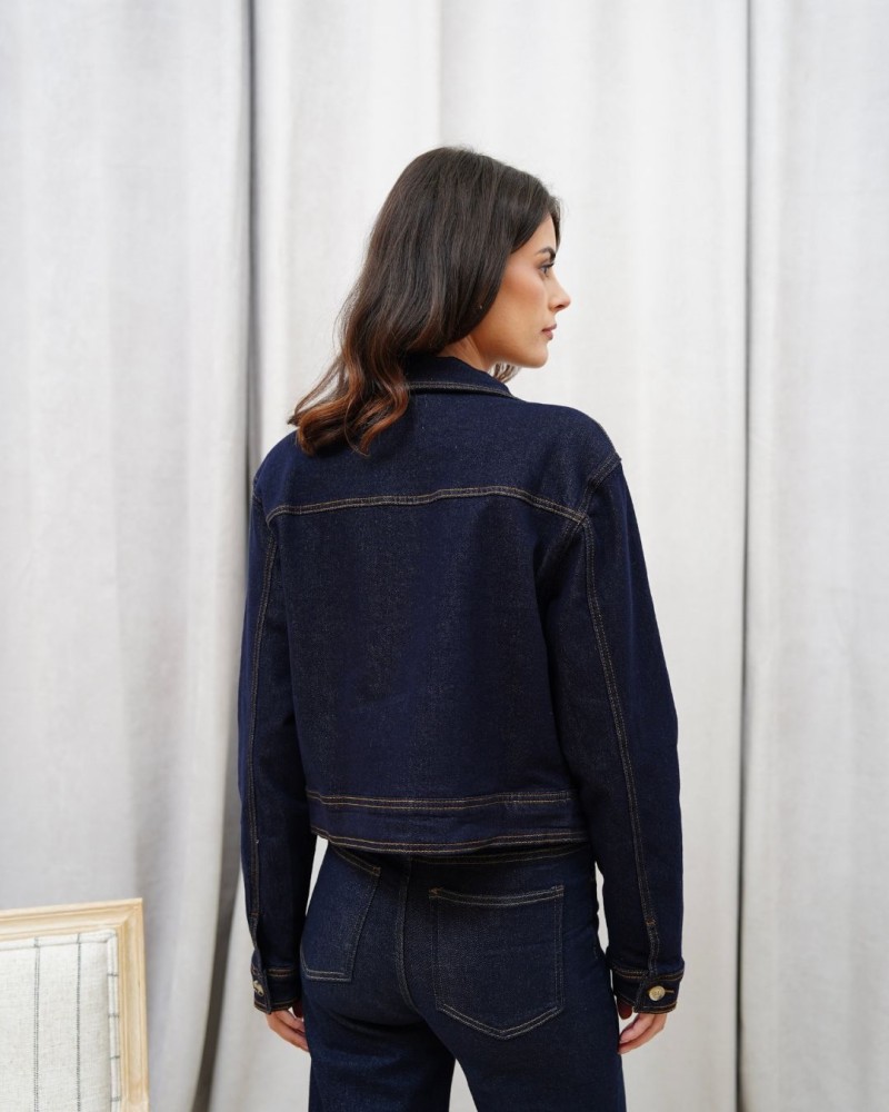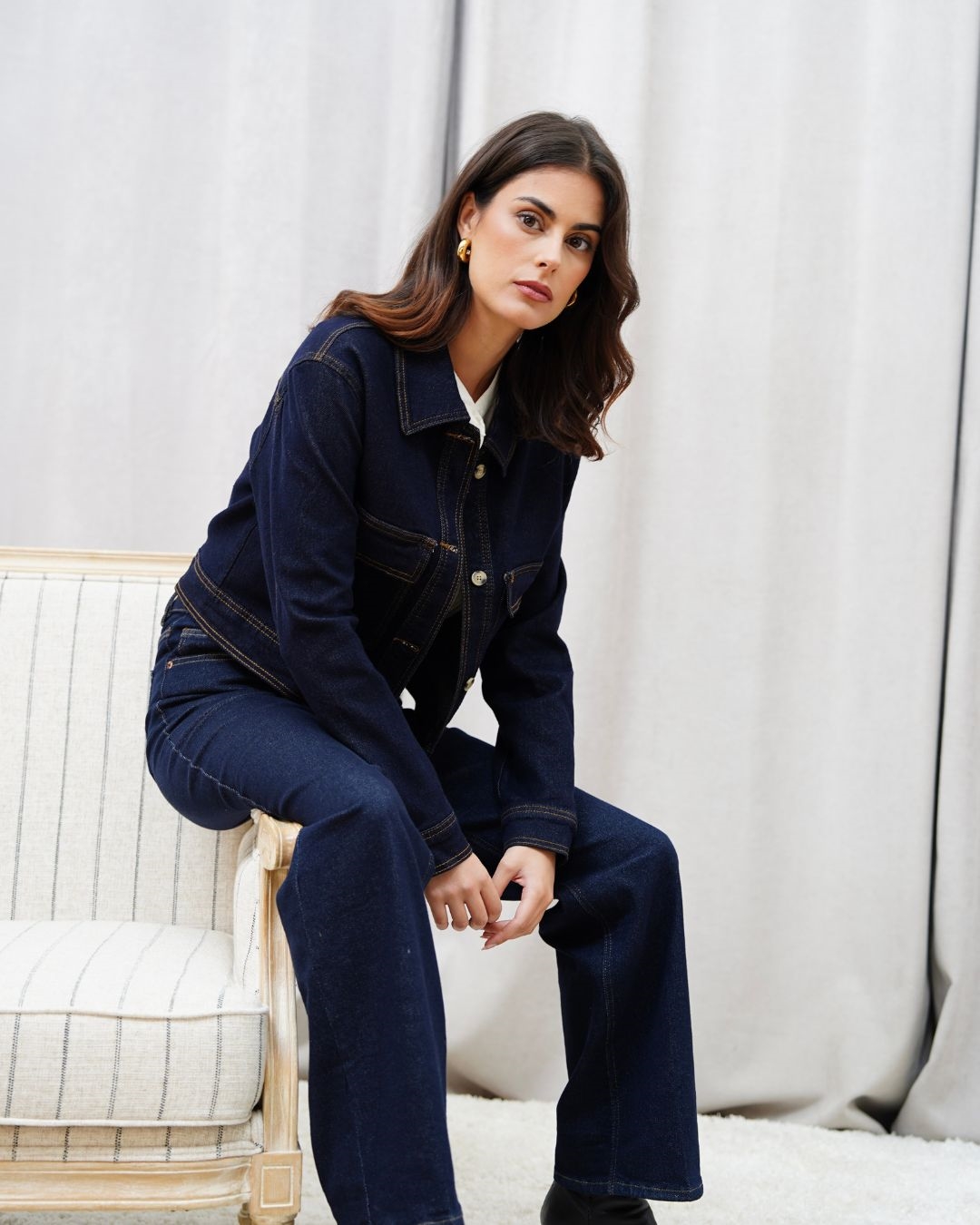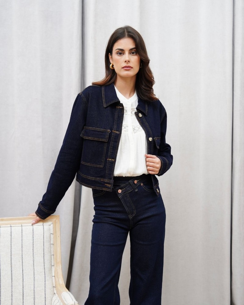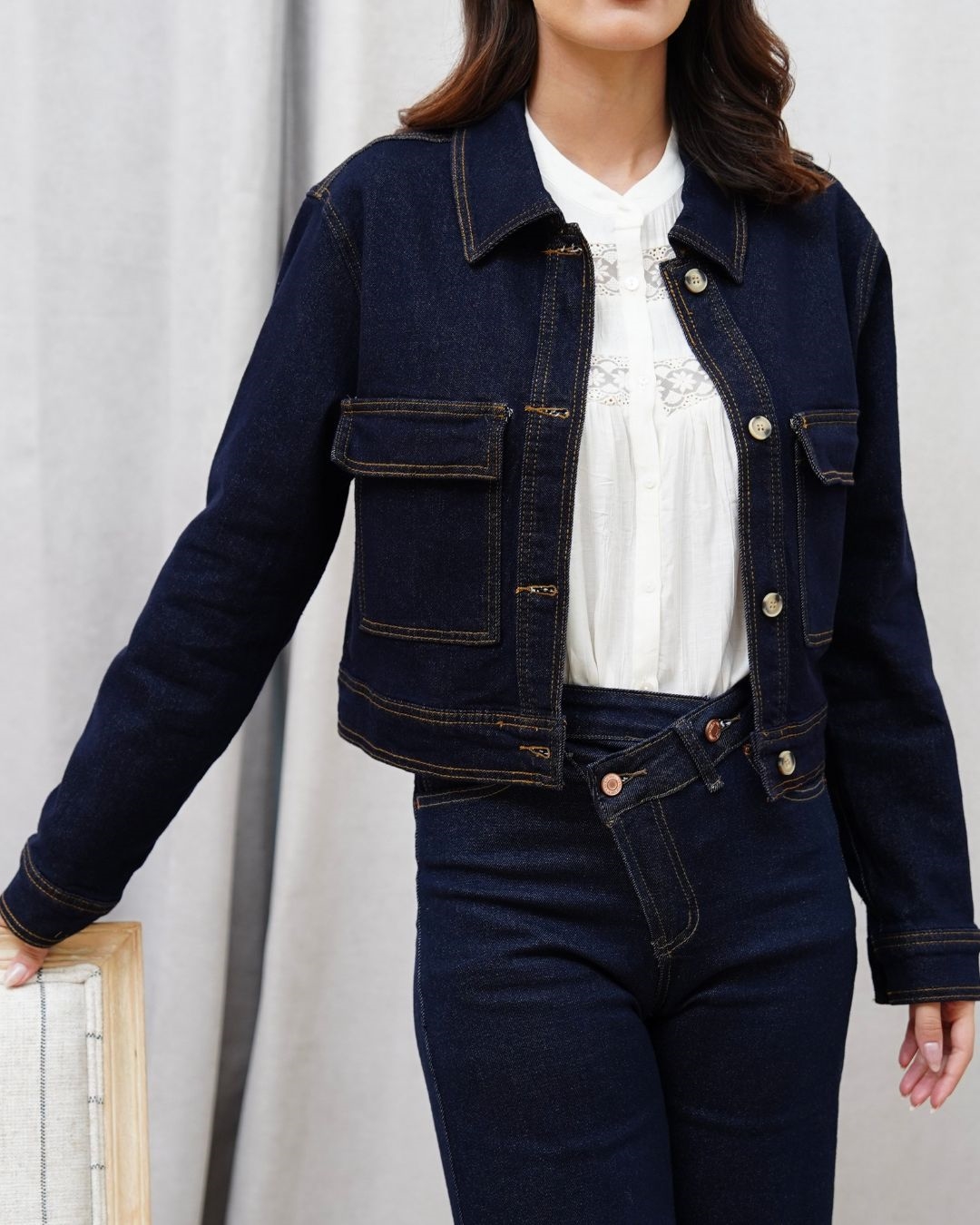 La veste Areve est une pièce intemporelle qui revisite le style denim avec élégance. Confectionnée en jean brut de qualité, elle se distingue par sa coupe droite légèrement courte et ses poches à rabat qui apportent une touche structurée. Fermée par des boutons métalliques, elle se porte facilement sur une chemise romantique ou un t-shirt basique pour un look chic et décontracté. La veste Areve est un indispensable à superposer, parfait pour toutes les saisons.