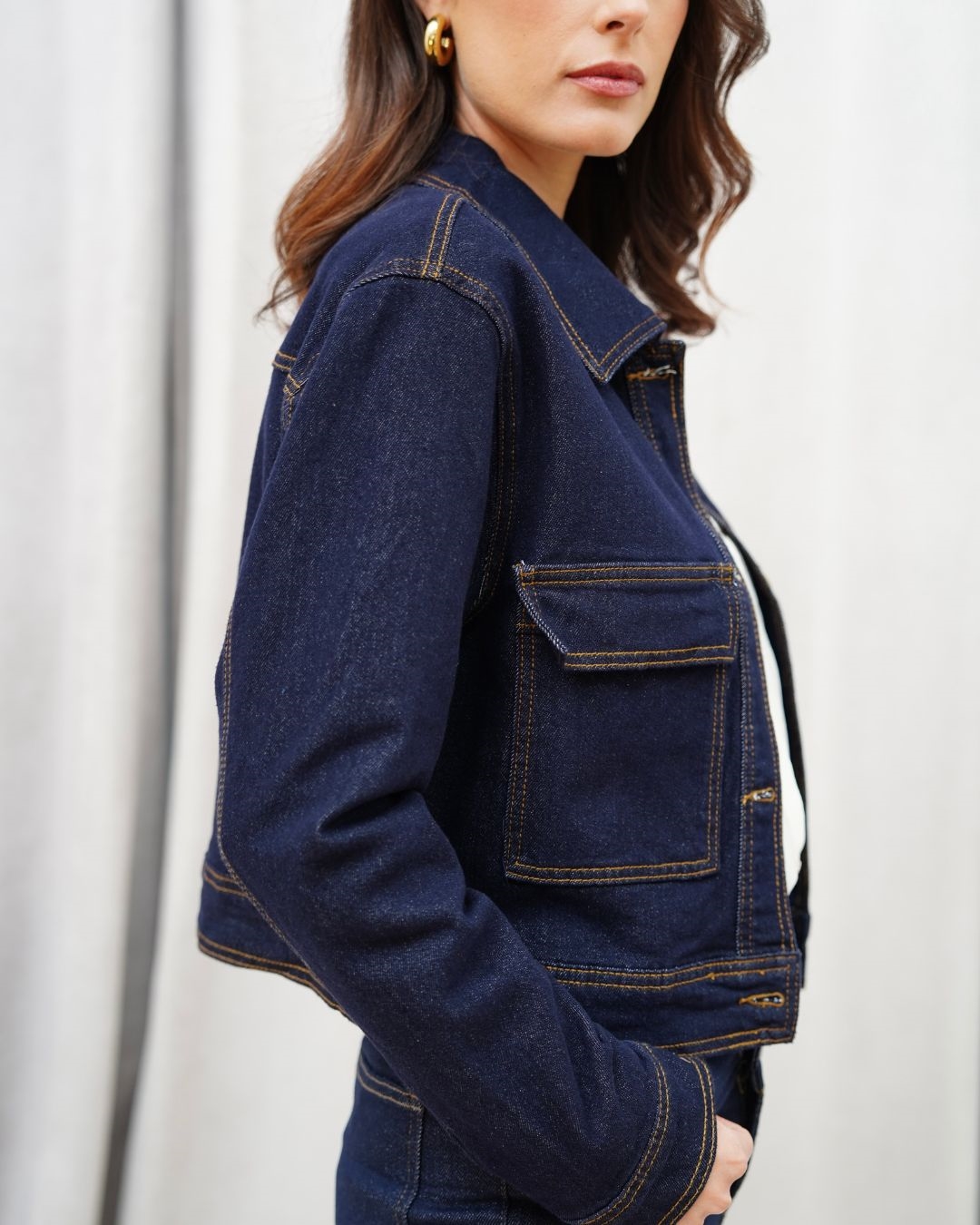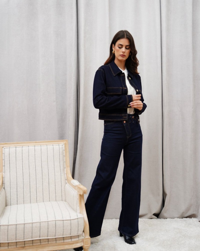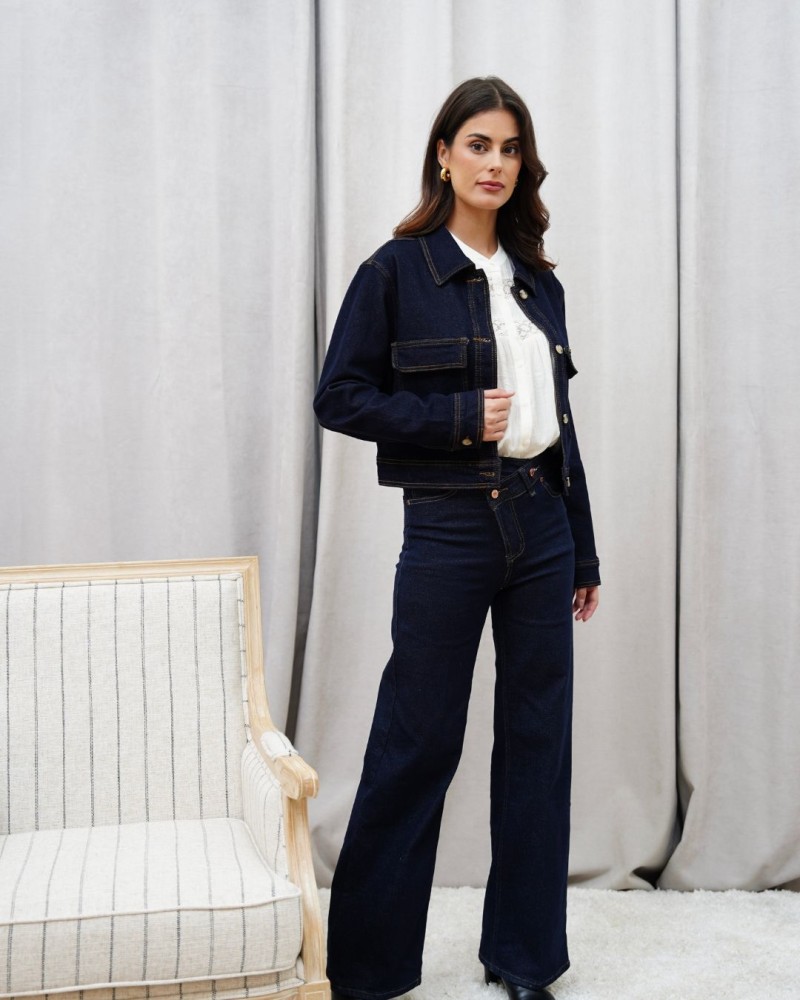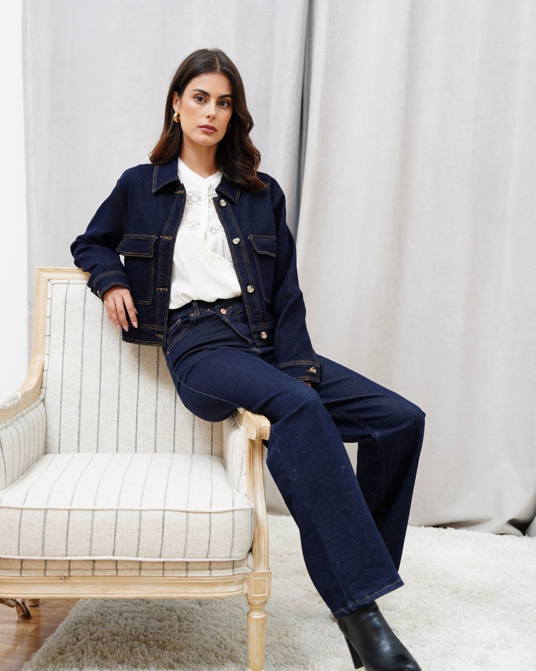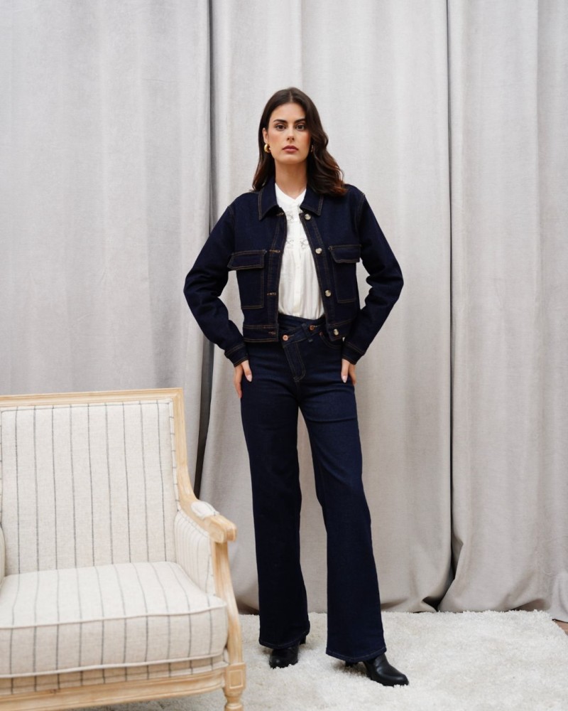 La veste Areve est une pièce intemporelle qui revisite le style denim avec élégance. Confectionnée en jean brut de qualité, elle se distingue par sa coupe droite légèrement courte et ses poches à rabat qui apportent une touche structurée. Fermée par des boutons métalliques, elle se porte facilement sur une chemise romantique ou un t-shirt basique pour un look chic et décontracté. La veste Areve est un indispensable à superposer, parfait pour toutes les saisons.